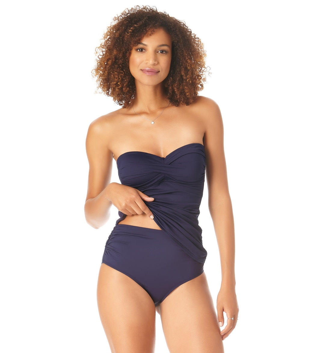 The Anne Cole Twist Front Bandeau Tankini Top is sweet and stylish. A solid escape to your wild side. this shirred side tankini top has a sweetheart bandeau neckline with an adjustable/removable strap.