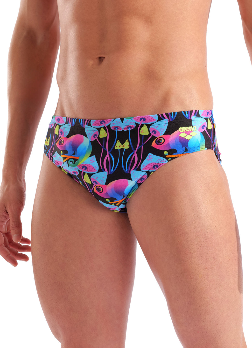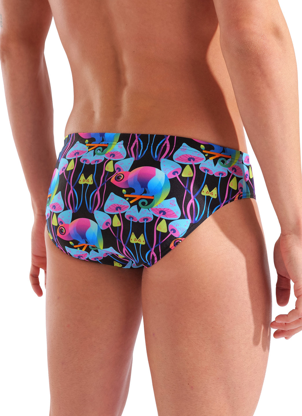 Train in style in these extremely durable and chlorine-proof men's swim briefs with super stylish chameleons print that are perfect for frequent use.