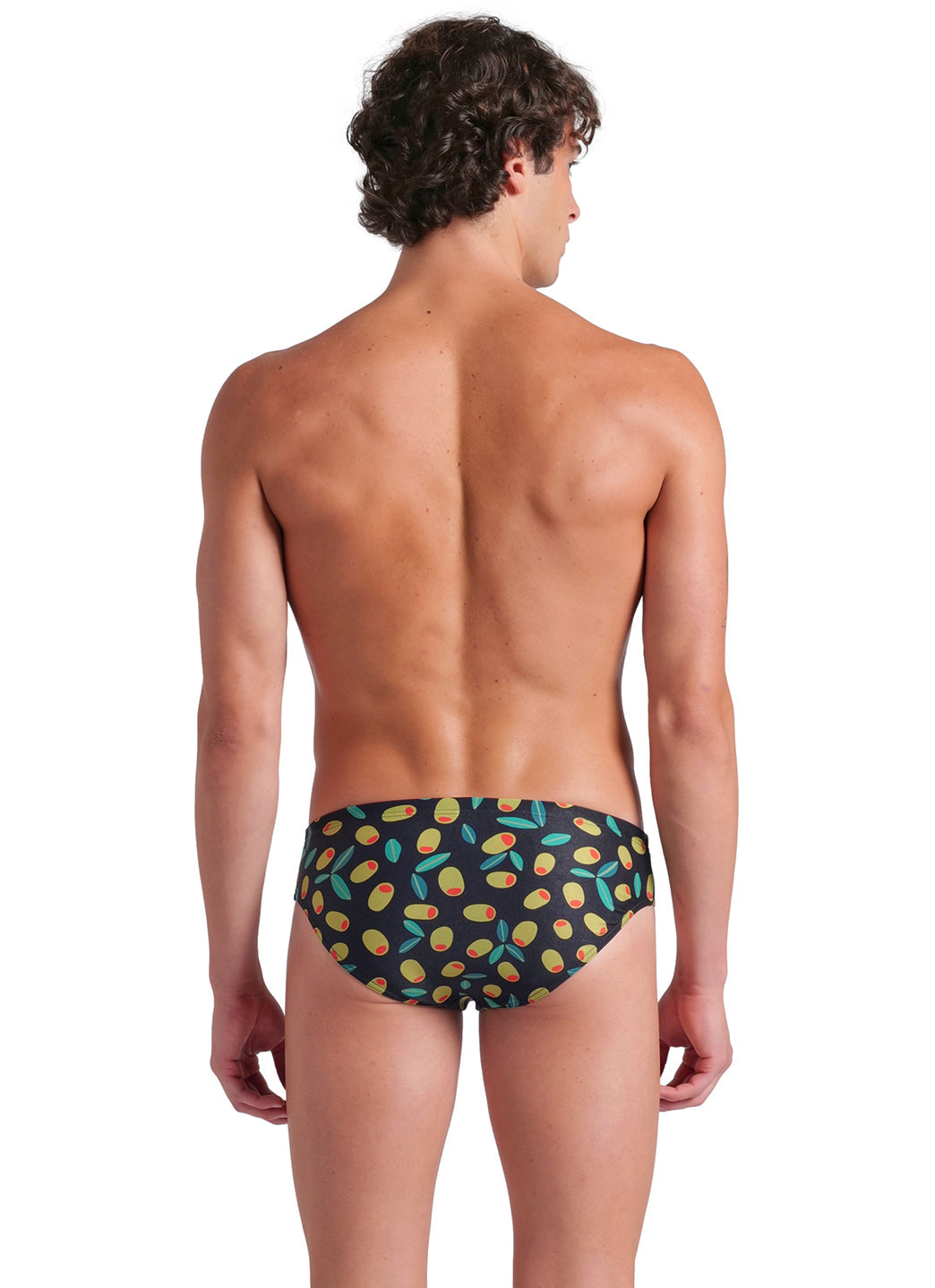 Channel your Mediterranean flair in the arena Men's Olives Brief Swimsuit. made with chlorine-proof. eco-friendly MaxLife Eco fabric. The fully lined design and adjustable waist keep you confident lap after lap.