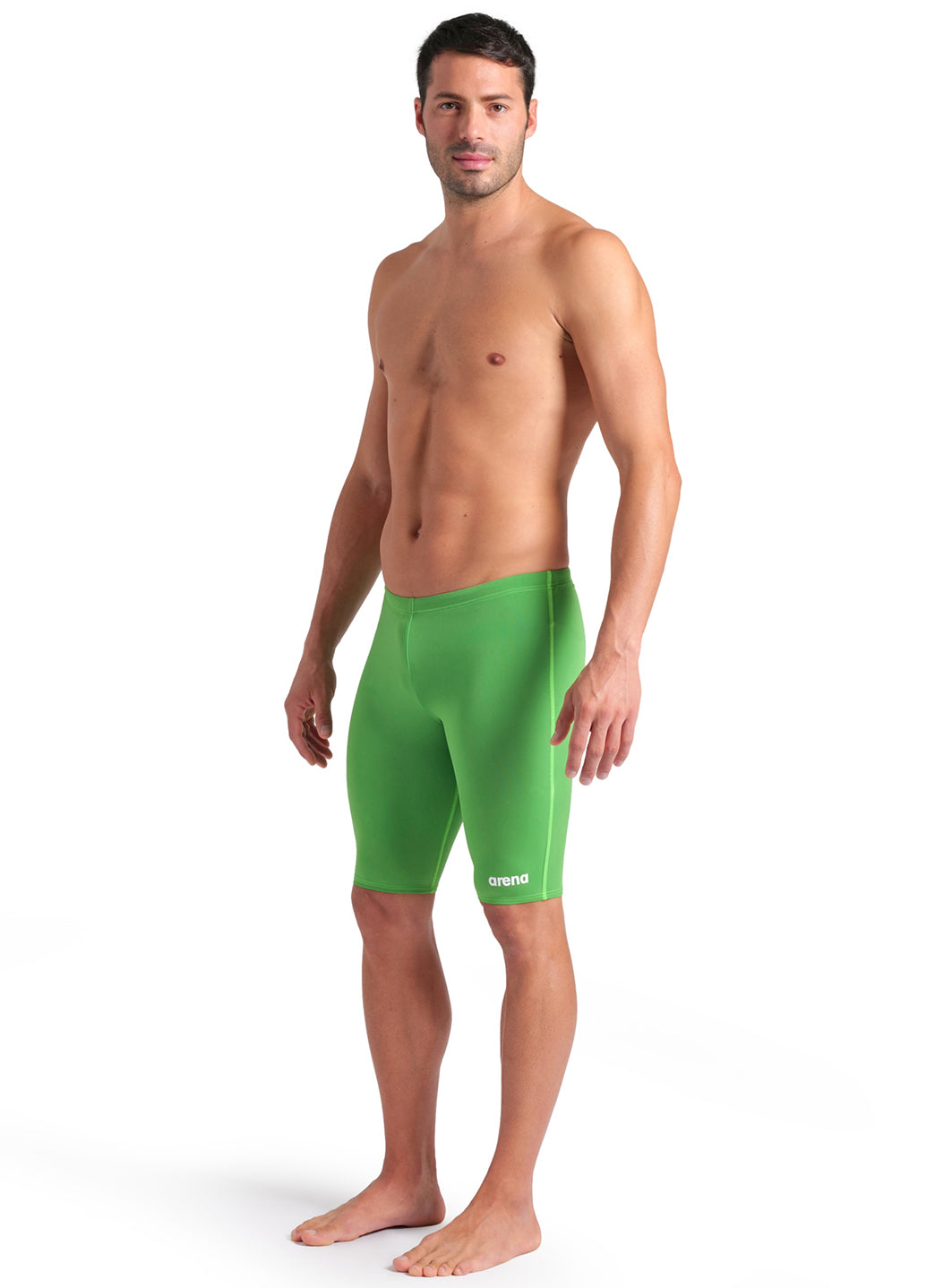 Influenced by champion swimmers and part of the arena Team Line collection. the arena Men's Solid Jammer Swimsuit is ideal for competitive. intensive swimming. Crafted from a highly chlorine-resistant fabric that dries quickly and offers sun protection. it's designed for durability and longevity.
