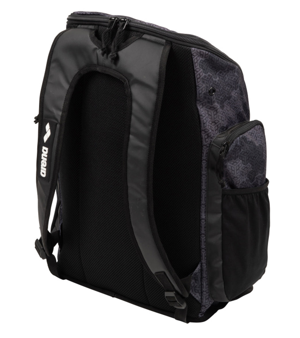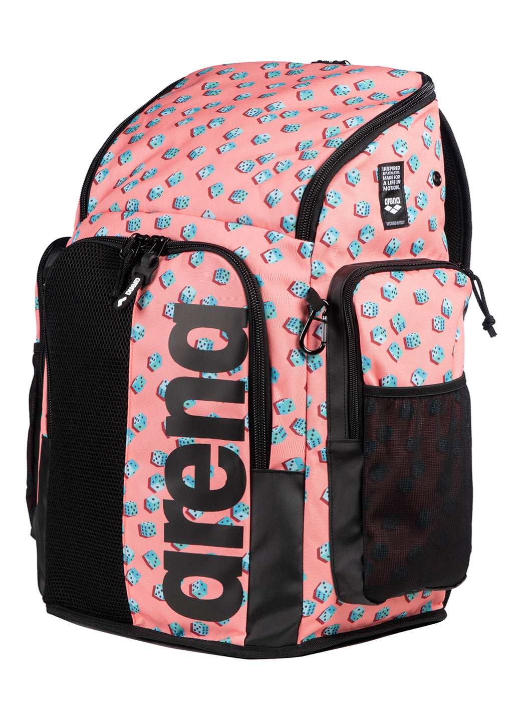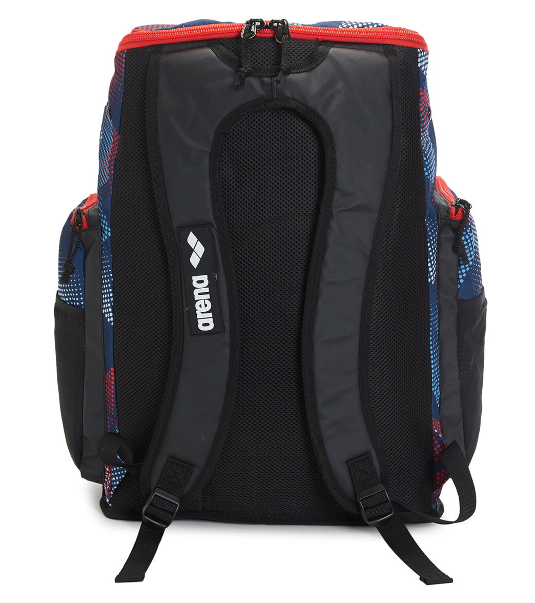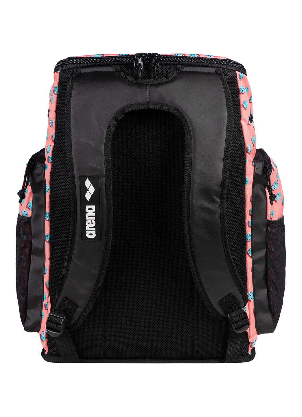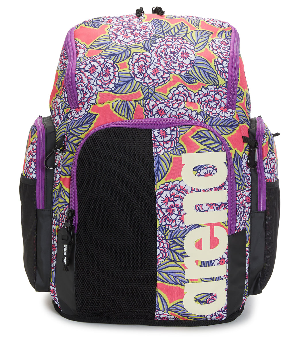 Eye-catching and smartly designed for swimmers. the arena Spiky III 45 Allover Backpack provides ample storage space with water-repellent fabric and offers outstanding comfort with its padded back panel.