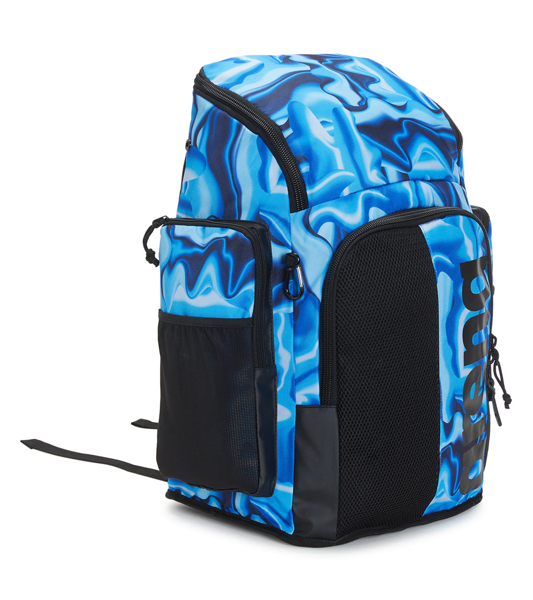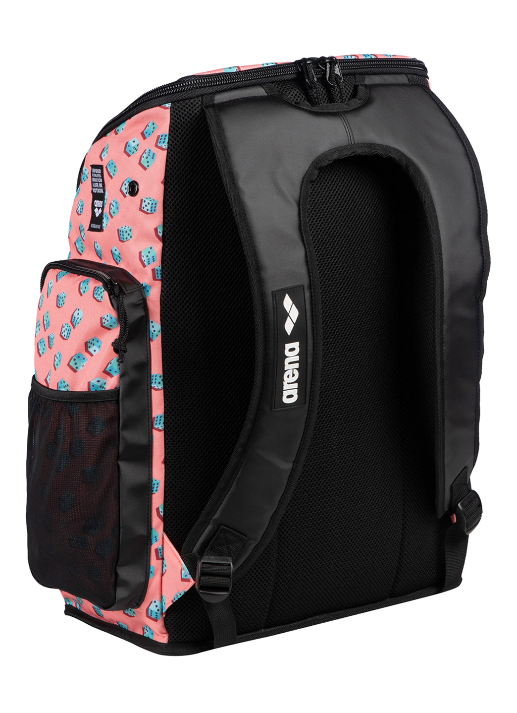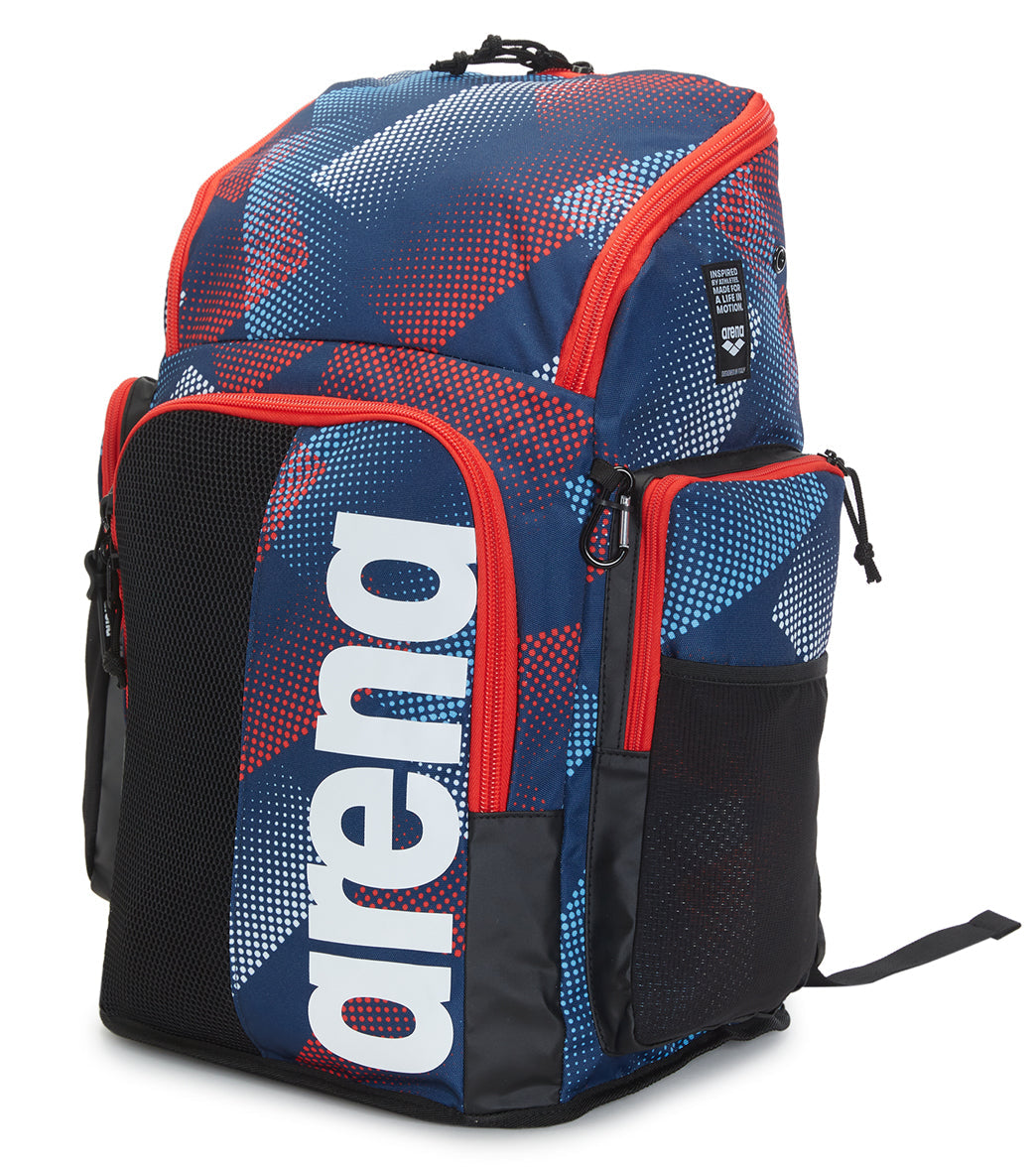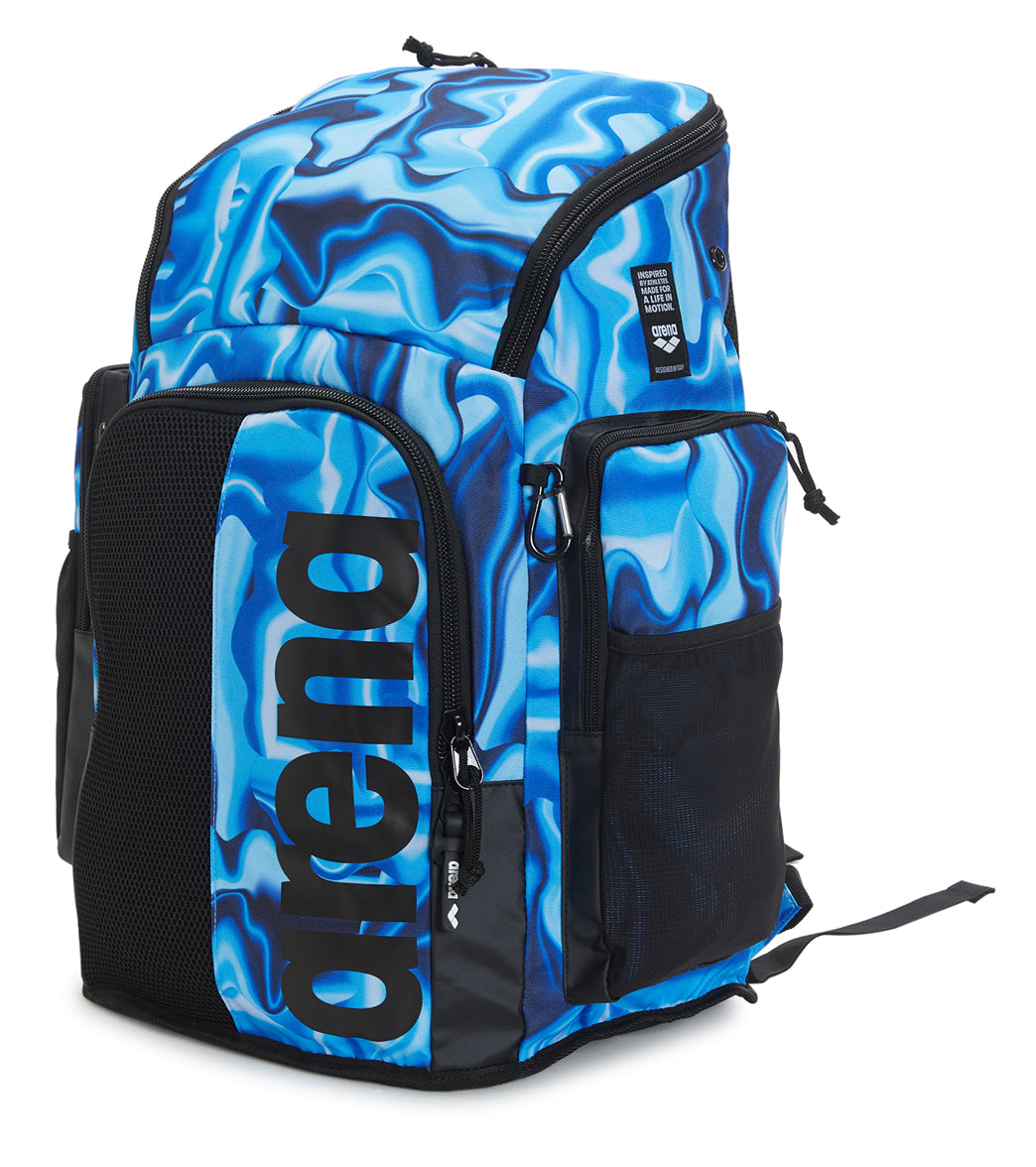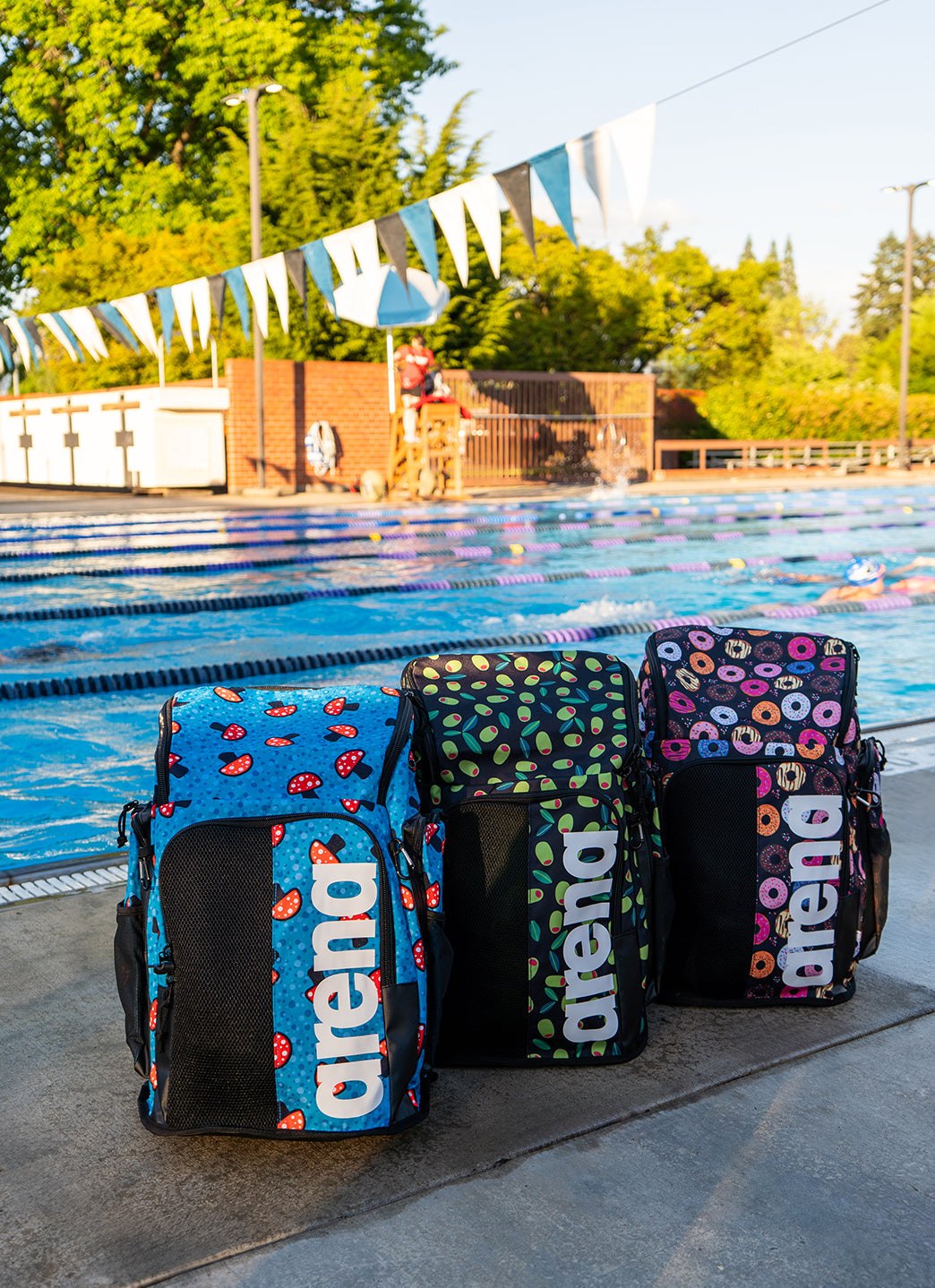 Eye-catching and smartly designed for swimmers. the arena Spiky III 45 Allover Backpack provides ample storage space with water-repellent fabric and offers outstanding comfort with its padded back panel.
