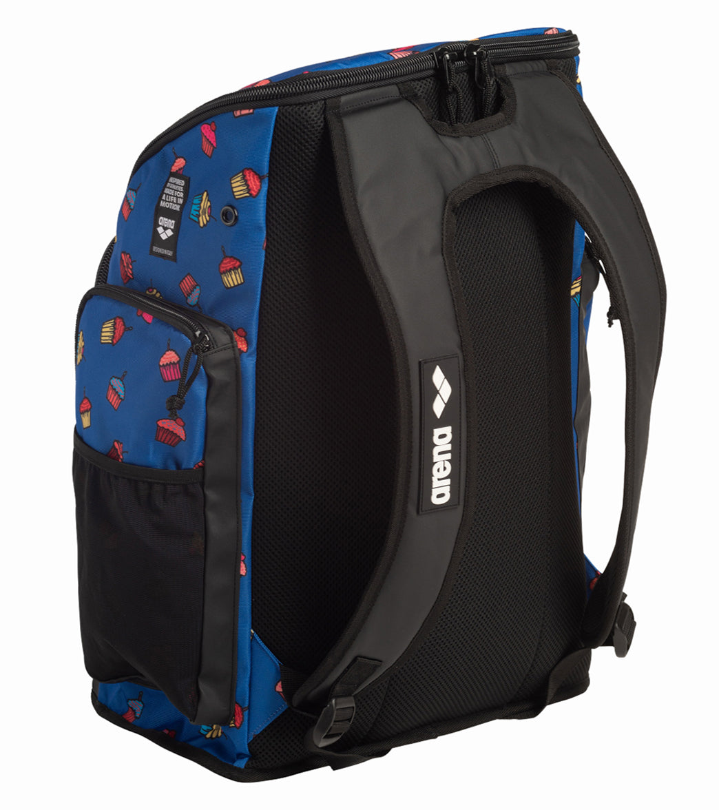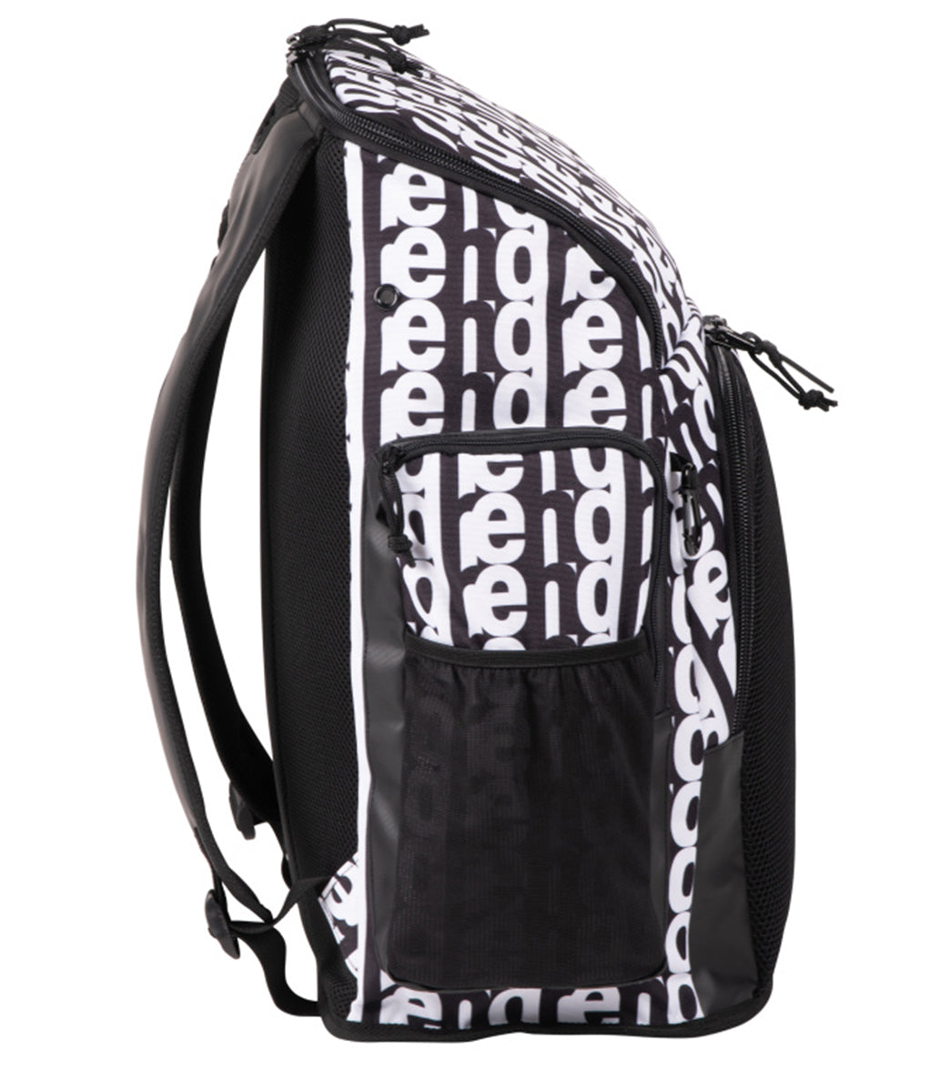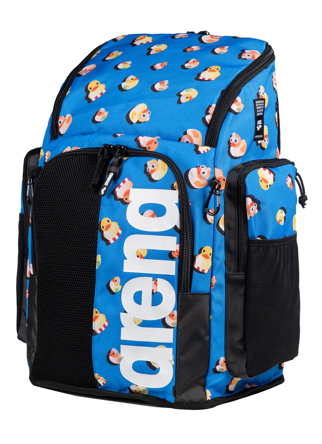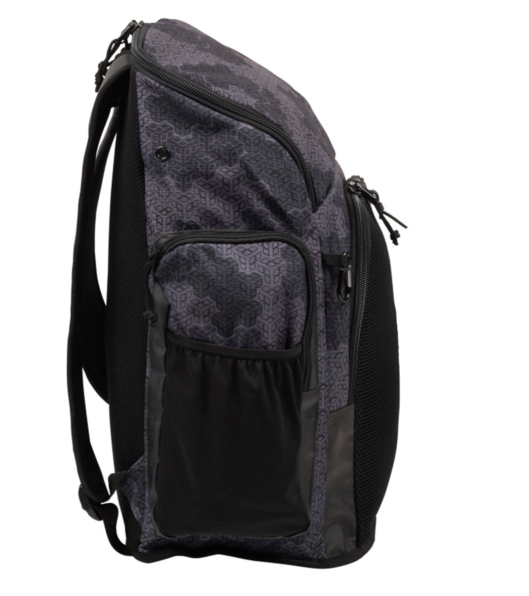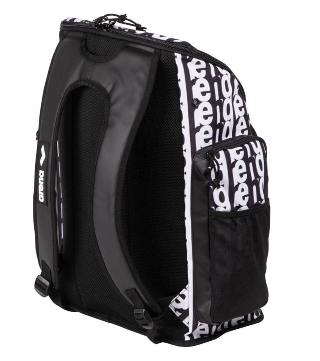 Eye-catching and smartly designed for swimmers. the arena Spiky III 45 Allover Backpack provides ample storage space with water-repellent fabric and offers outstanding comfort with its padded back panel.