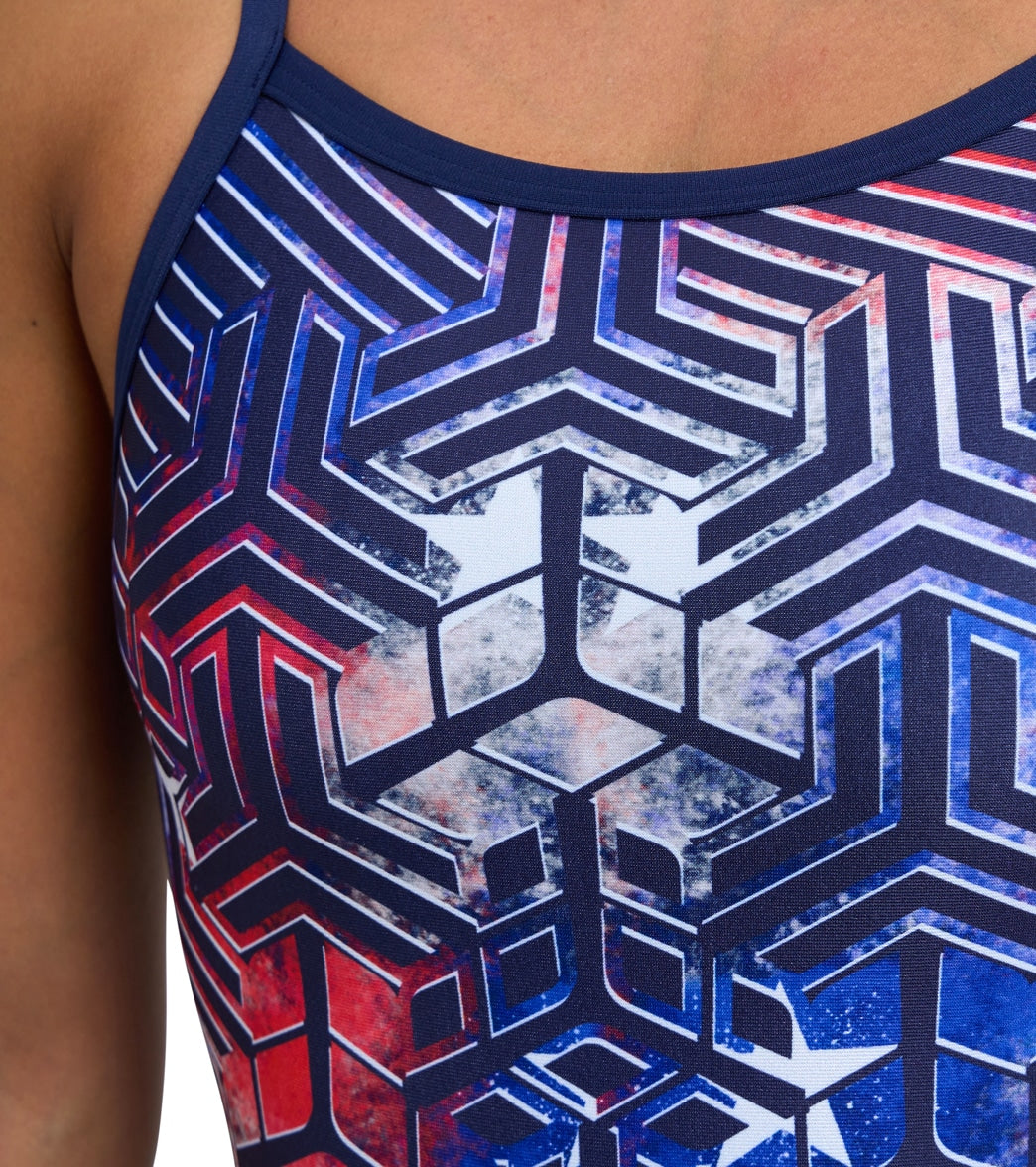 Stay fly while you train hard in the competitively cut arena Women's Kikko Pro Light Drop Back One Piece Swimsuit.