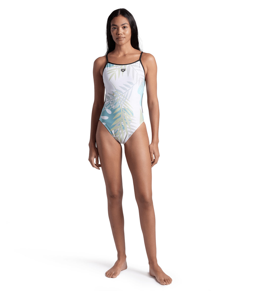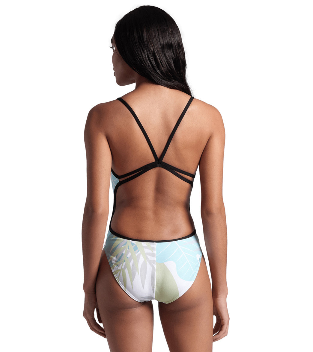 Transition seamlessly from pool to performance with the Arena Women's Light Floral Lace Back One Piece Swimsuit. offering a lace back for agility and style.