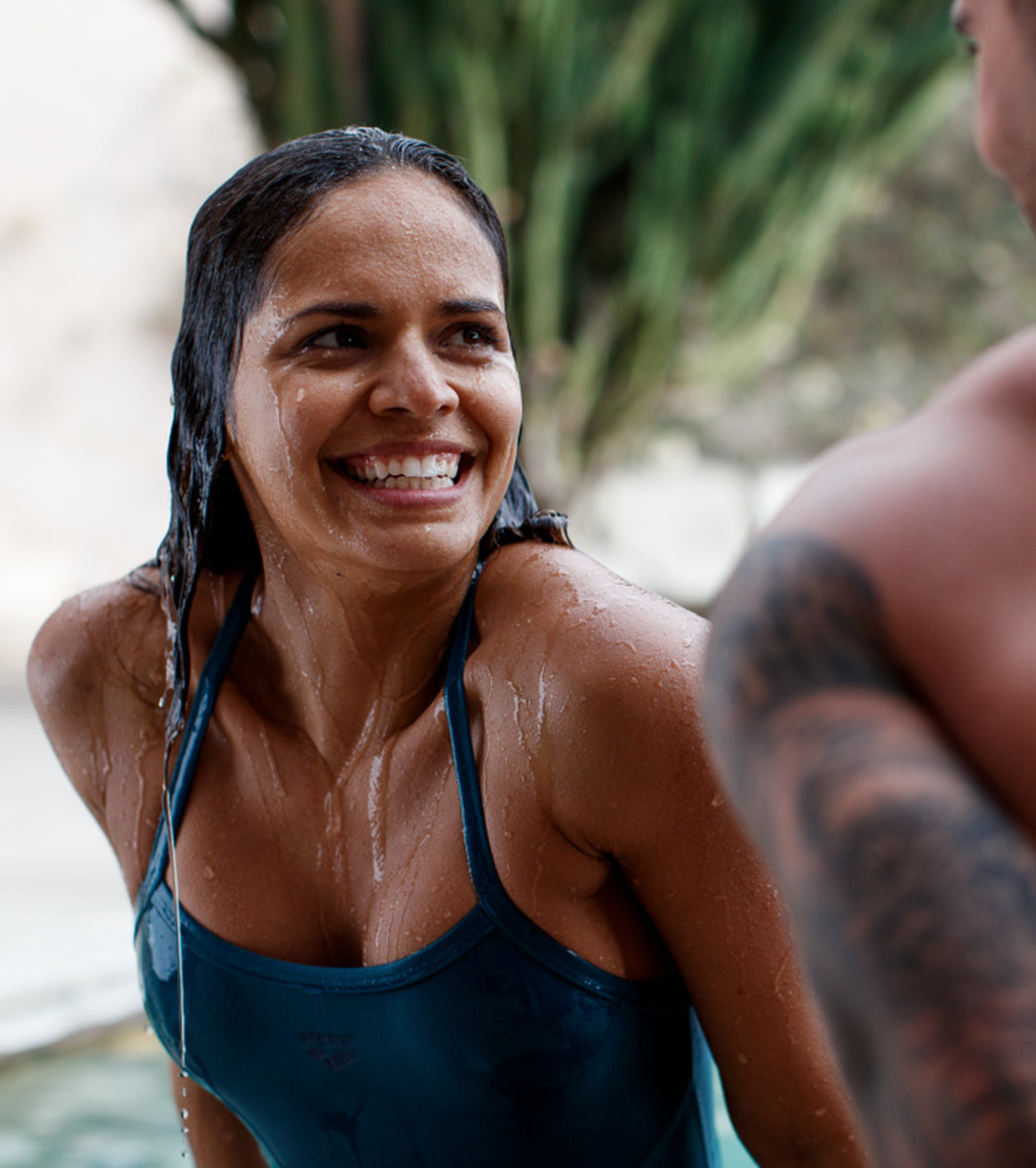 The super stretchy arena Solid Lightdrop Back Swimsuit is part of the extremely comfortable arena Feel line and fits like a second skin. Made of a chlorine-resistant and quick-drying fabric with recycled polyester. the elastane content guarantees a perfect fit and pleasant comfort. Equipped with adjustable straps and a comfortable inner bra for a secure fit and good support for the bust and waist area.