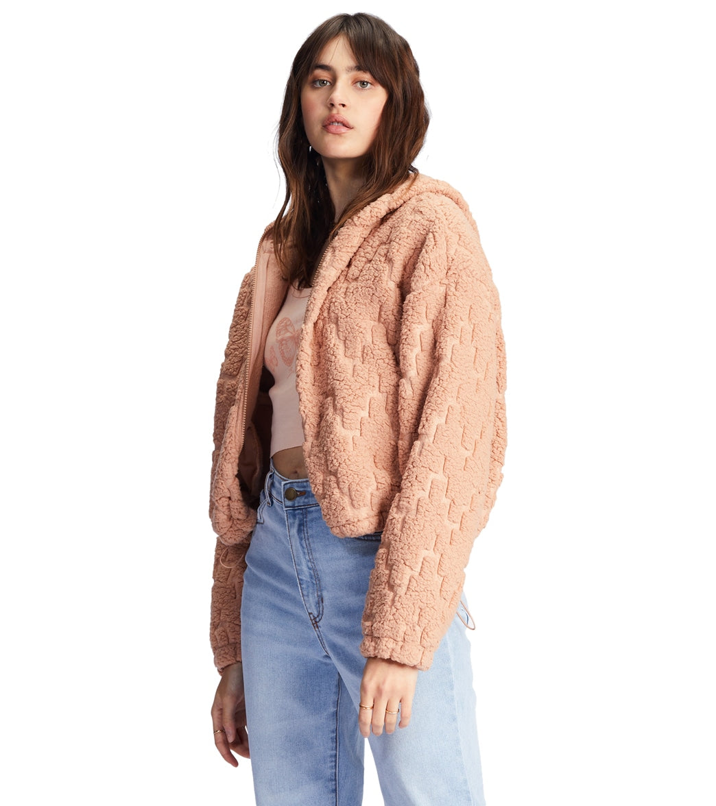 Made of plush sherpa fleece. the Billabong Women's Marlowe Hoodie Sweatshirt is the coziest thing in your closet. This women's hooded zip-up jacket from our Essentials collection has a mid-weight feel. cut in a relaxed shape with pockets and a bungee hem to block out cold.