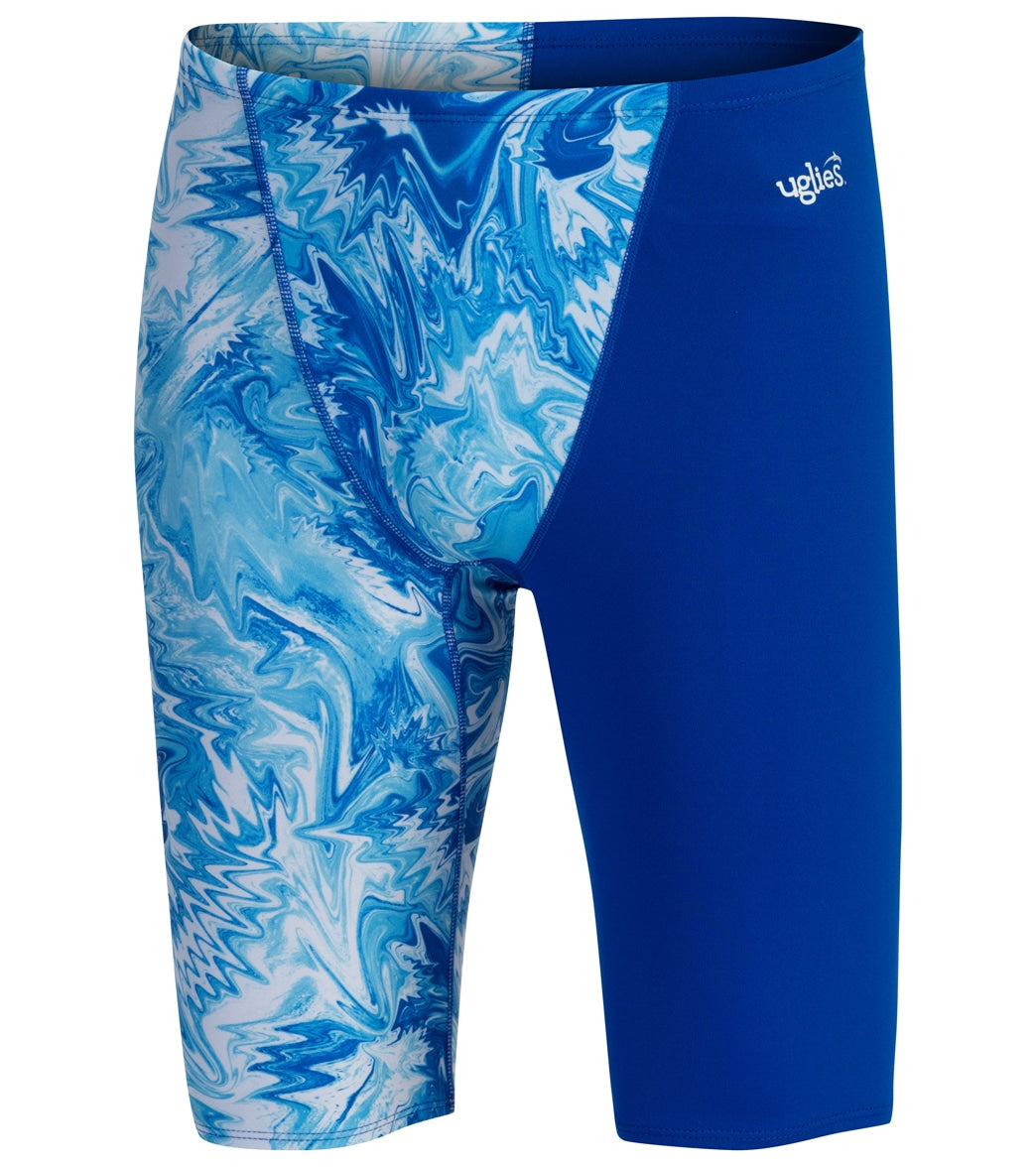 The Dolfin Uglies Men's Jammer Swimsuit suit is made with you in mind. built for comfort and fit. Featuring the right leg in a print and the left leg in a solid.