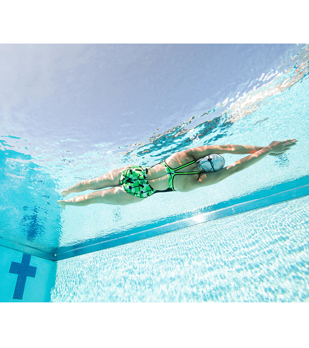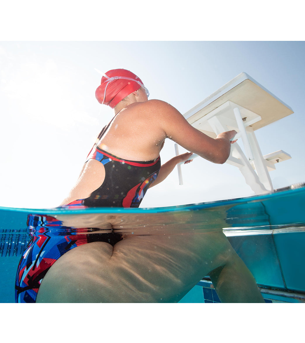 Featuring a dynamic design. the Dolfin Women's Reliance Color Blocked Razor DBX Back One Piece Swimsuit ensures top-notch performance and style in every stroke.