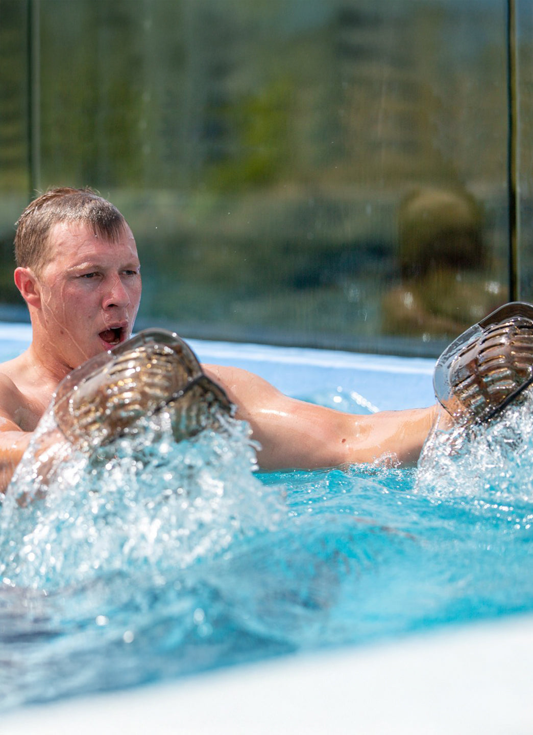 - Hand held omni-directional resistance training with these modern aquatic handbells.