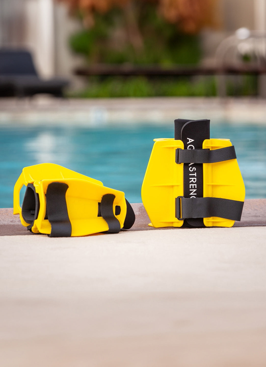 The Aquastrength Fins are designed for lower body exercise. they attach around the calf and have a patented four blade design that provides resistance in all directions. They are suitable for all ages and abilities wanting to improve lower body�strength. muscle tone and stability. This design is also particularly popular amongst those who perform a lot of plyometric training in their workouts.