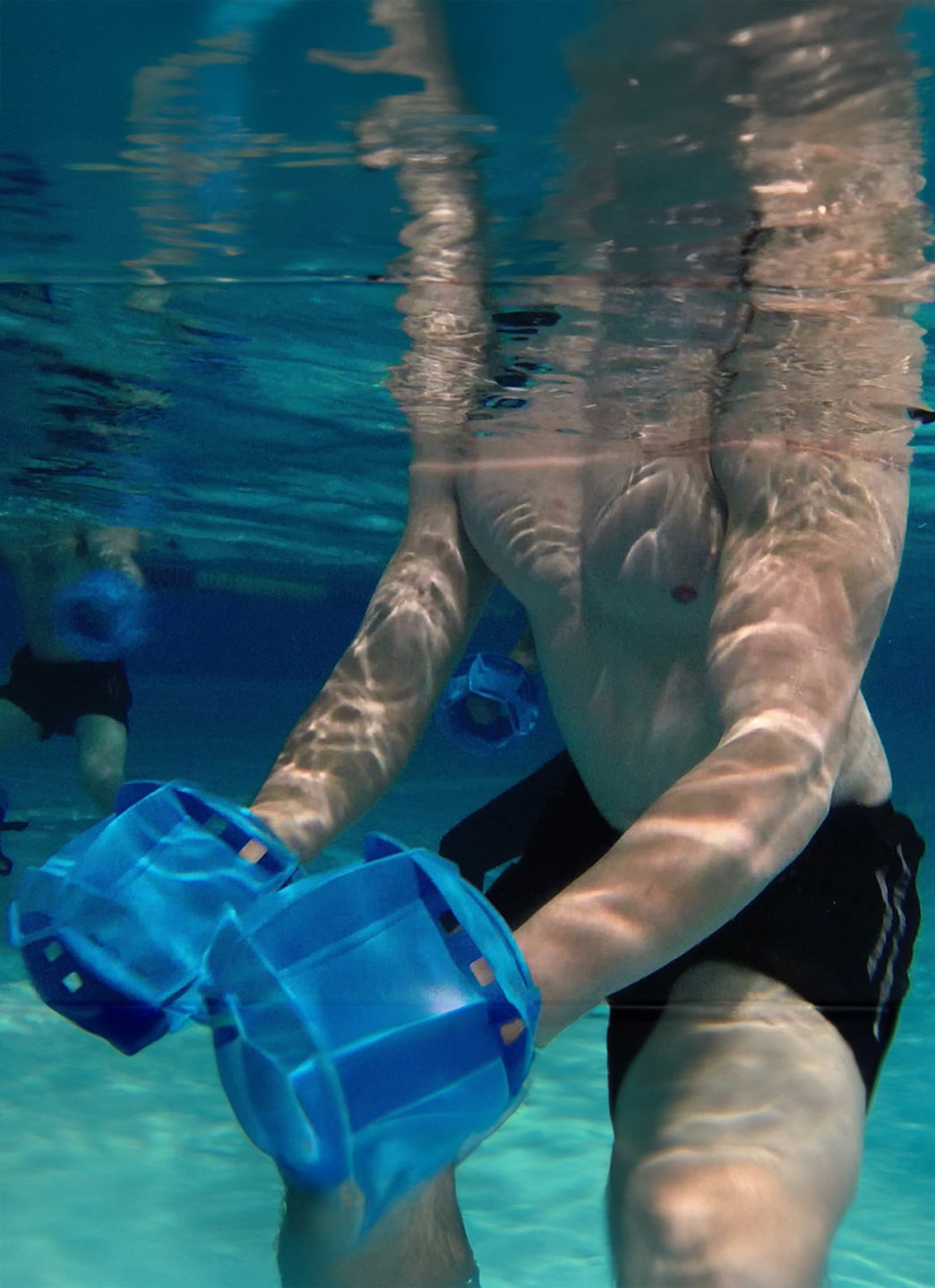 - Hand held omni-directional resistance training with these modern aquatic handbells.
