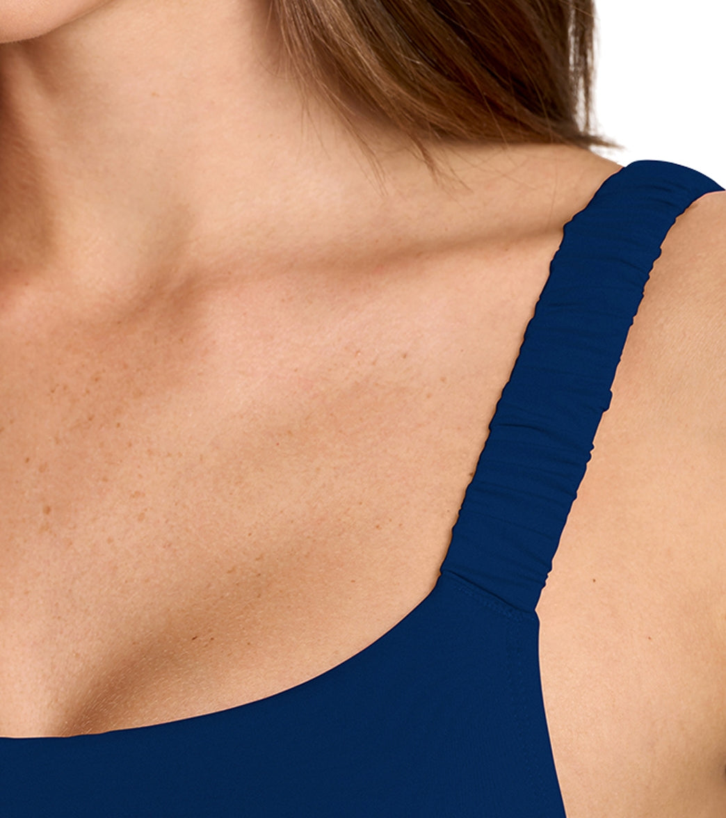 Showcasing underwire support and scrunchie straps. the Jantzen Women's Jolie Solid One Piece Swimsuit offers both style and comfort.