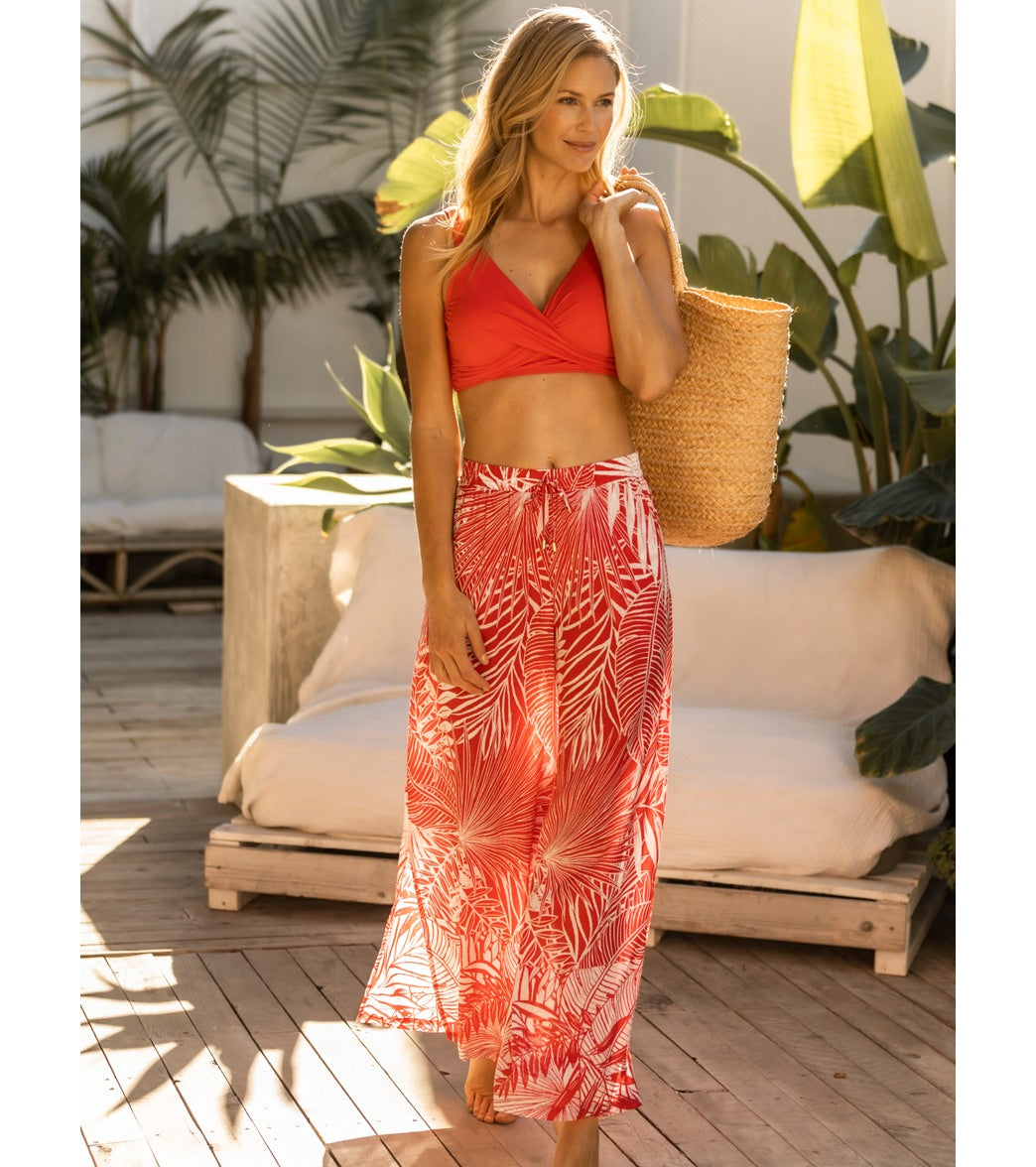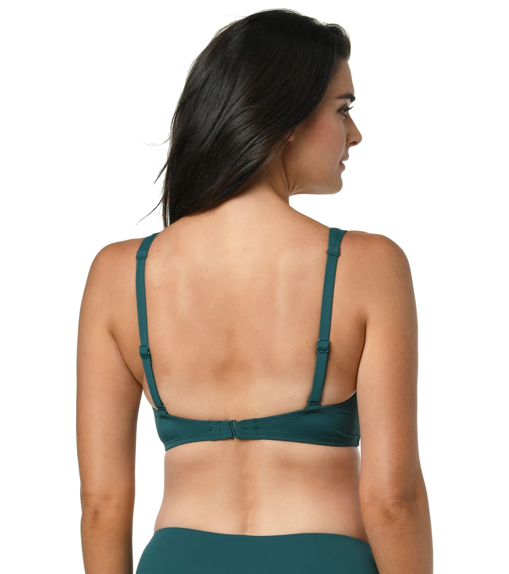 The Jantzen Women's Solids Vera Surplice Bikini Top features a surplice front design with underwire. removable cups and tank style straps for comfort. This top is versatile and can fit multiple bust sizes.