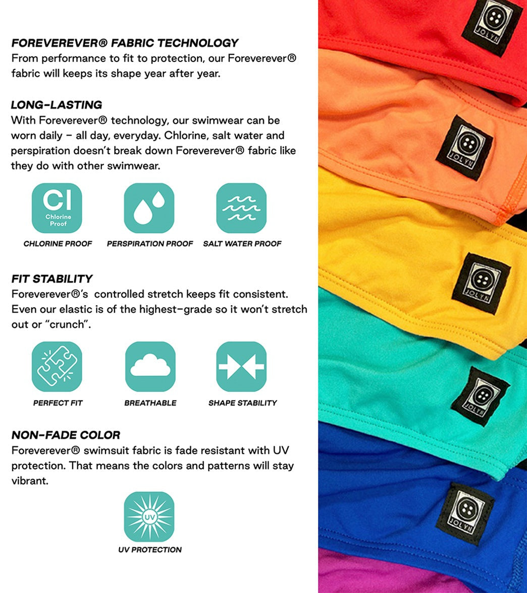 - Longlasting Foreverever® fabric technology is made to withstand chlorine. saltwater. and perspiration. meaning you can wear it every day!