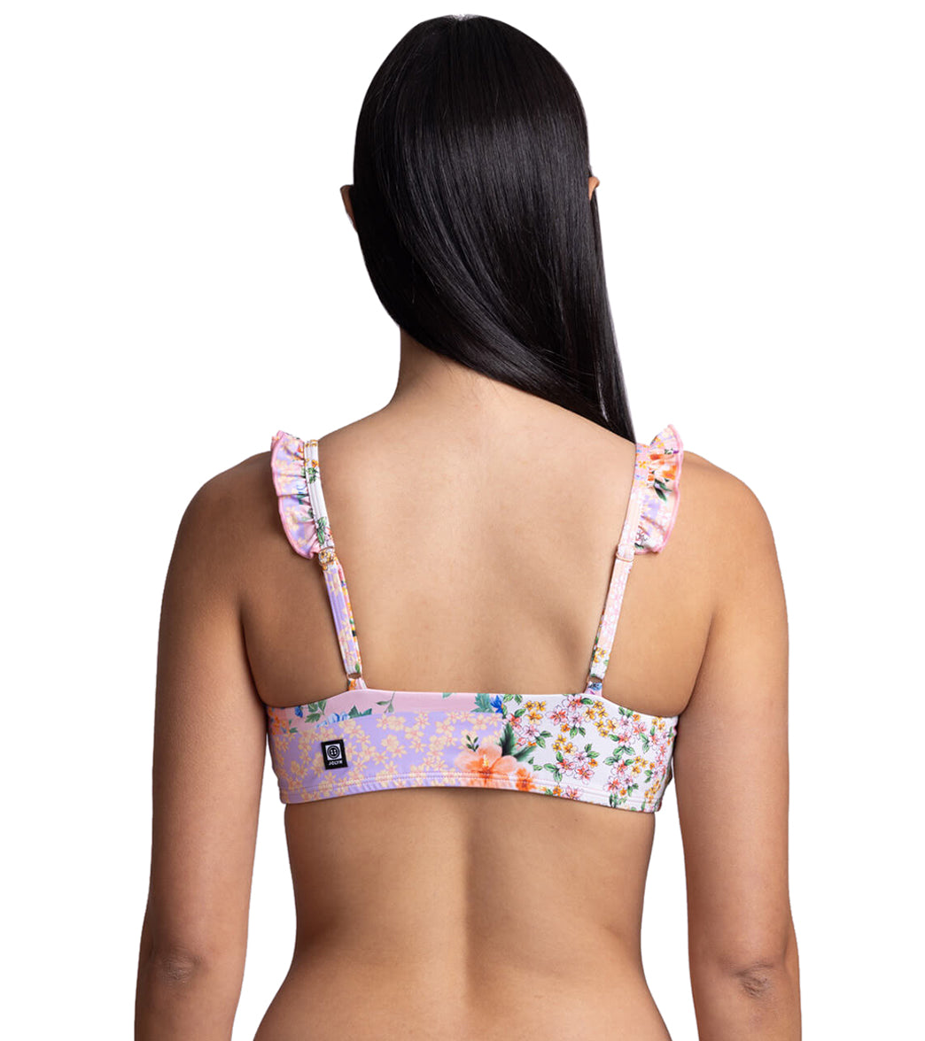 Adorn your swim days with the JOLYN Women's Donna Cottage Patch Bikini Top. featuring playful ruffles and a scoop neckline for a touch of whimsy.