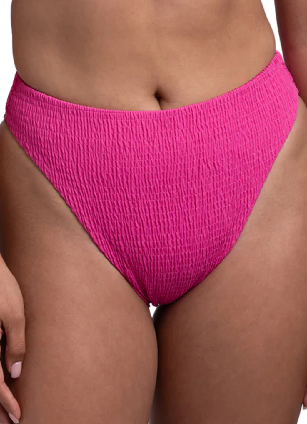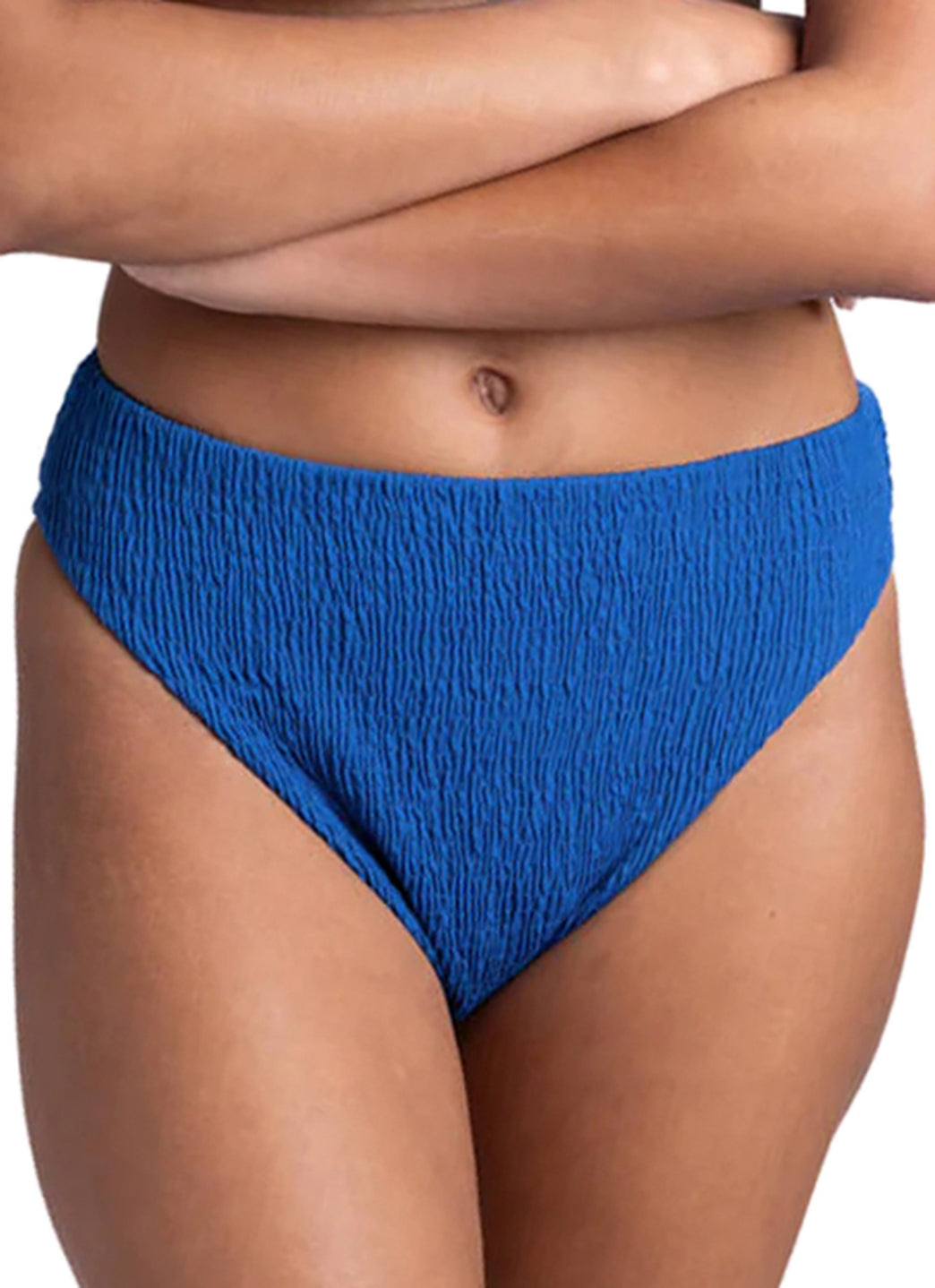 Elevate your swim attire with the JOLYN Women's Hazel High Waist Bikini Bottom. featuring smocked detailing for a flattering. high-waisted silhouette.