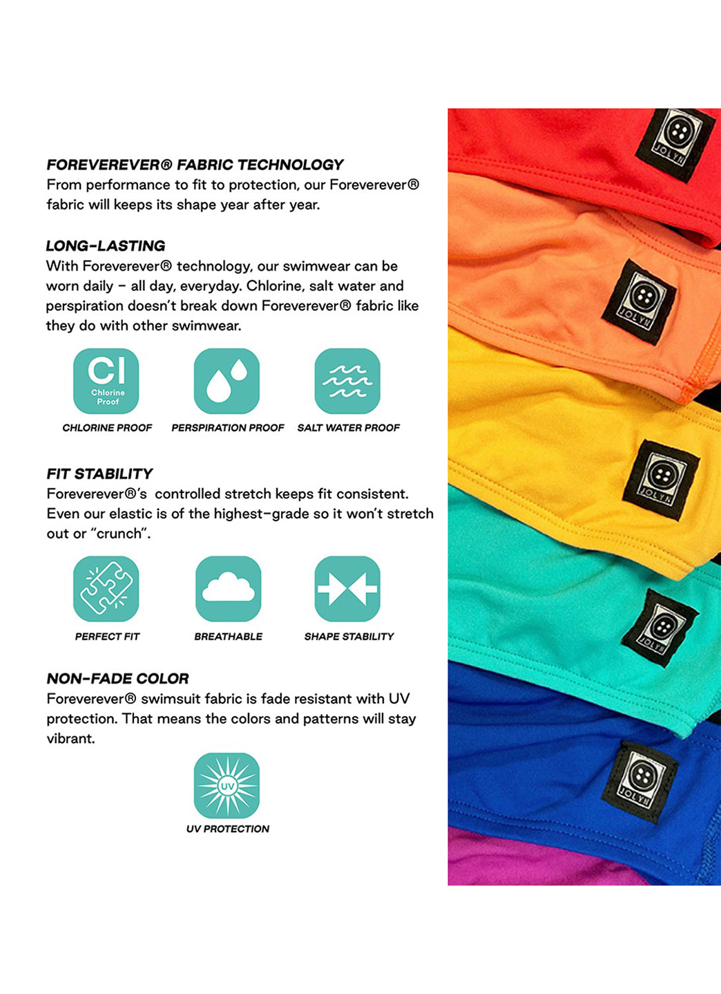 - Longlasting Foreverever® fabric technology is made to withstand chlorine. saltwater. and perspiration. meaning you can wear it every day!