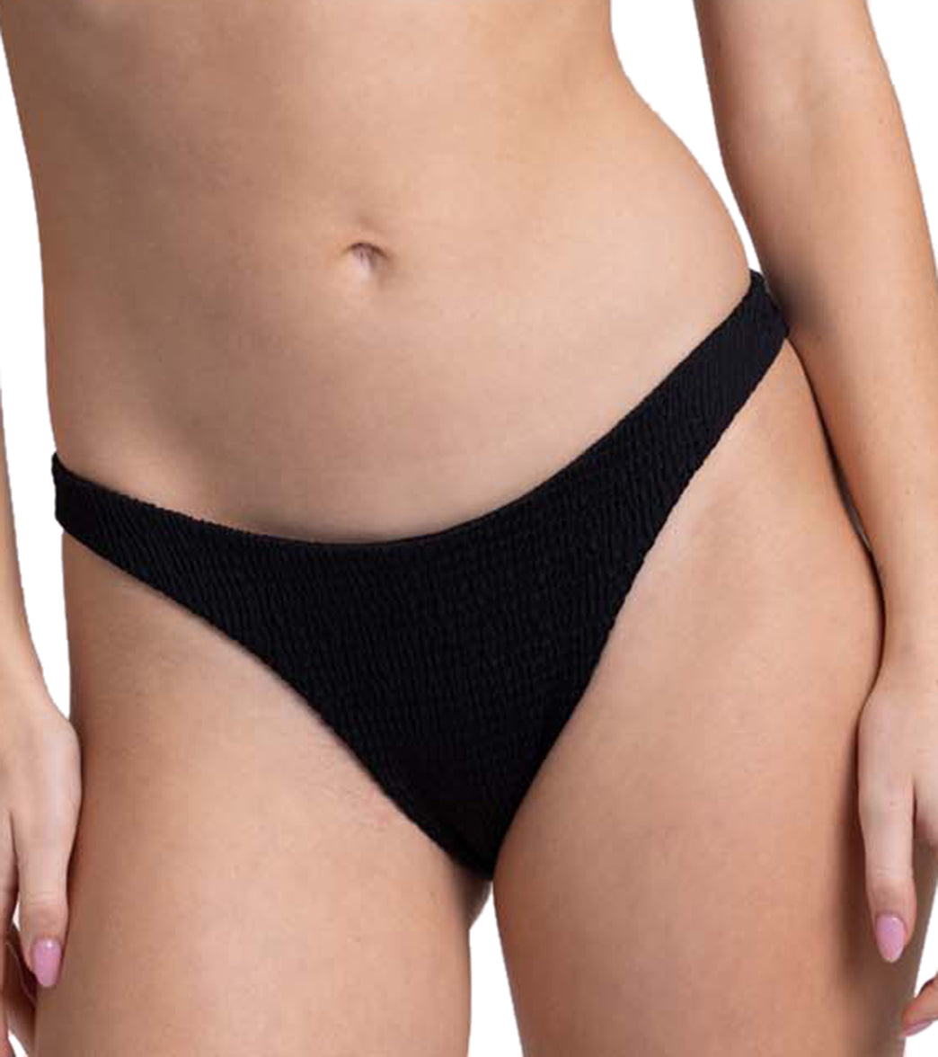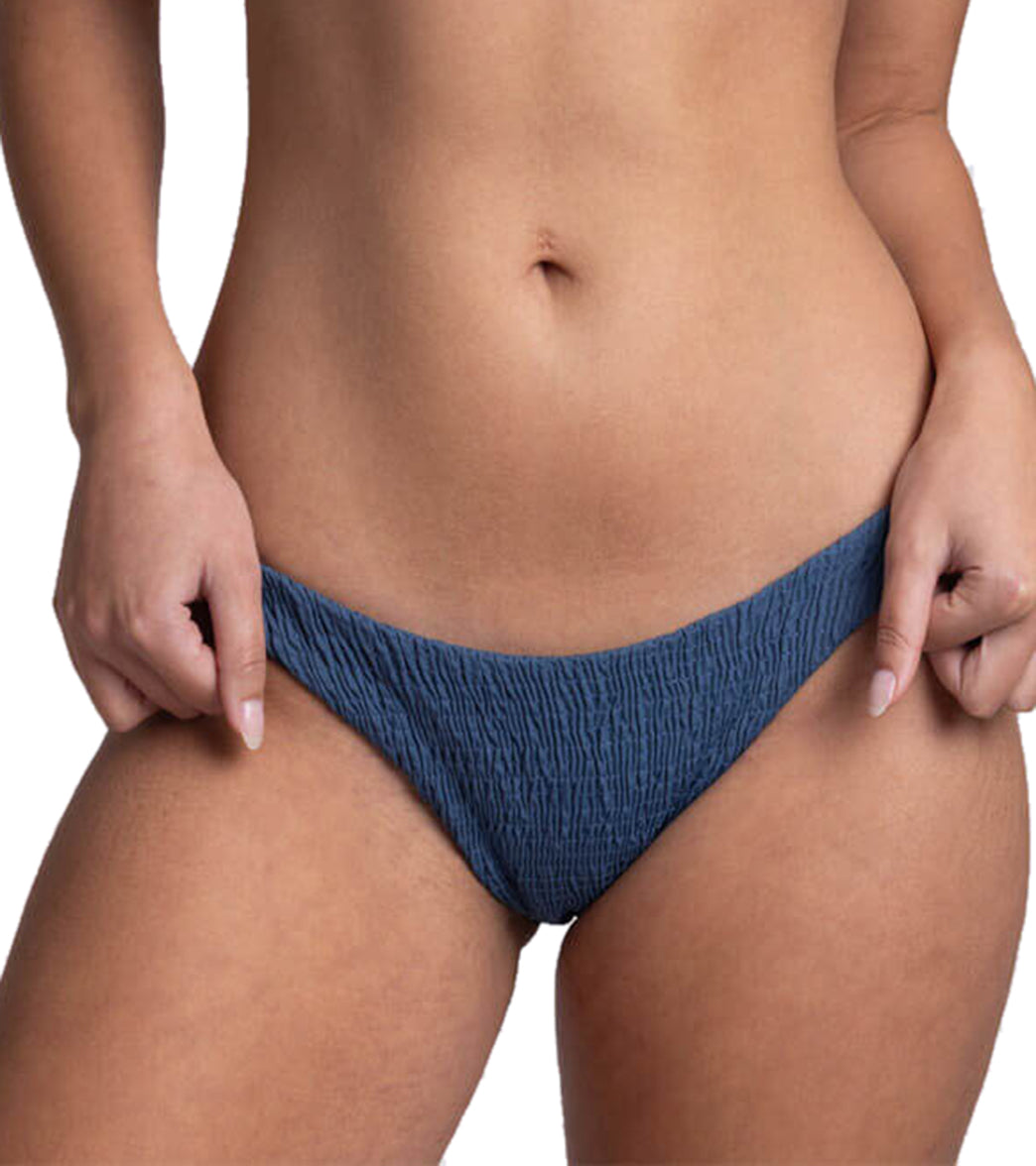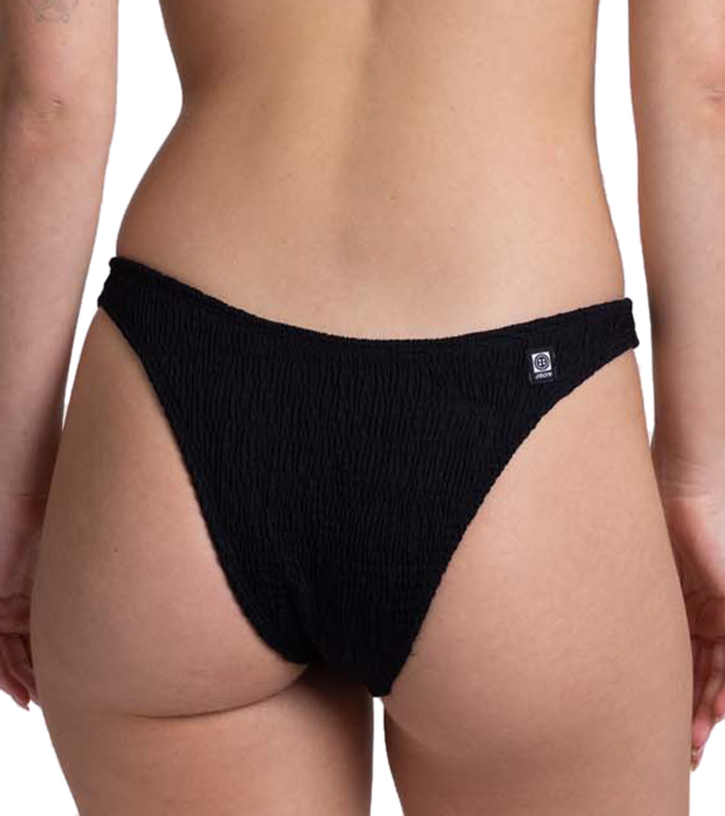 The JOLYN Women's Kelia Solid Smocked Bikini Bottom is a testament to timeless style and tactile detail. with a French cut that flatters and functions.