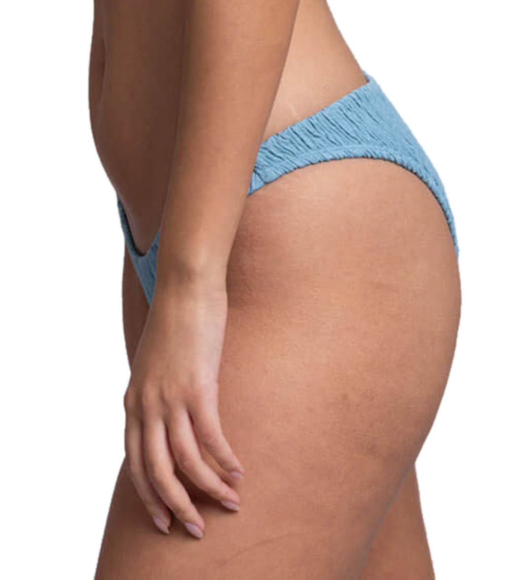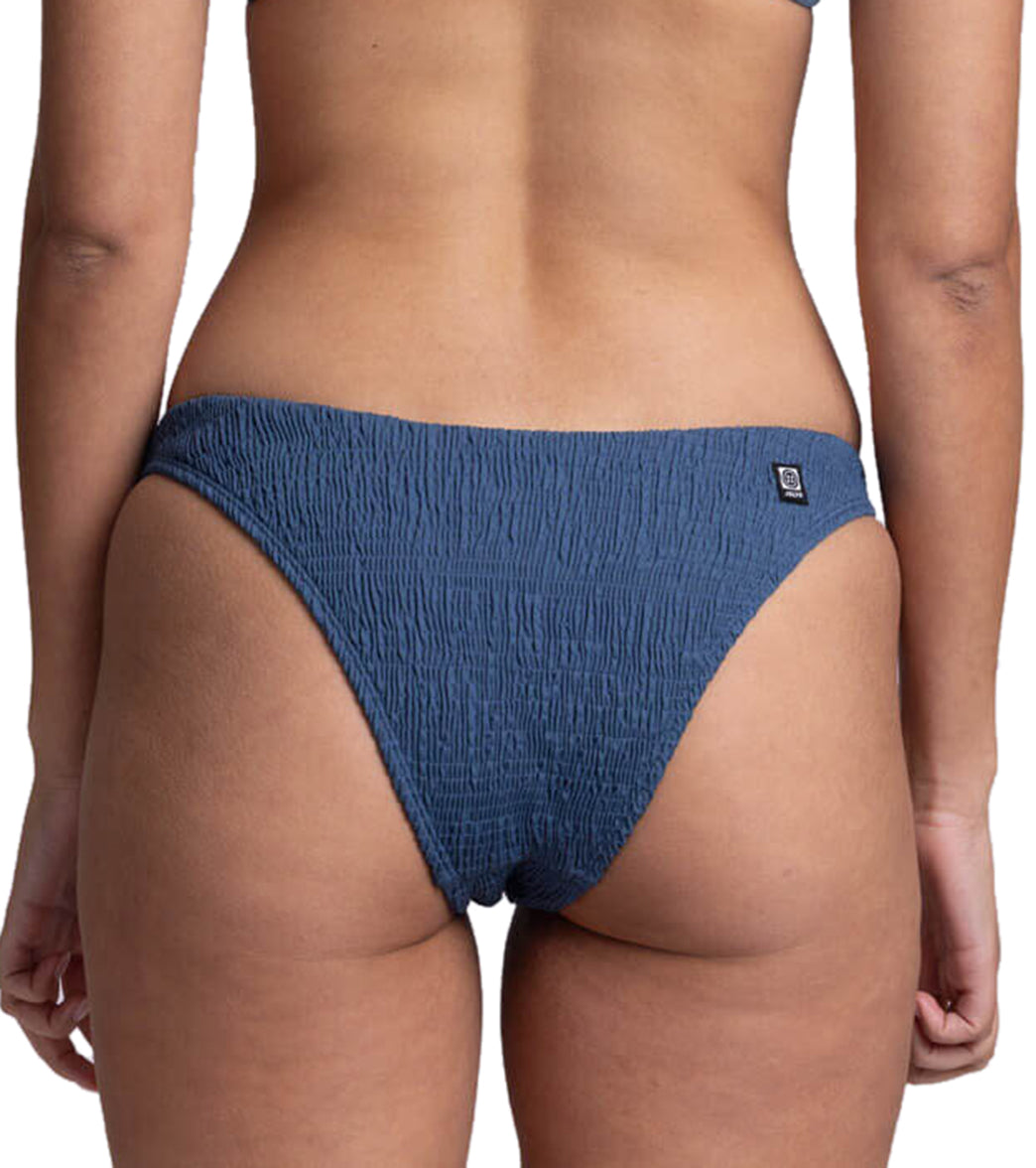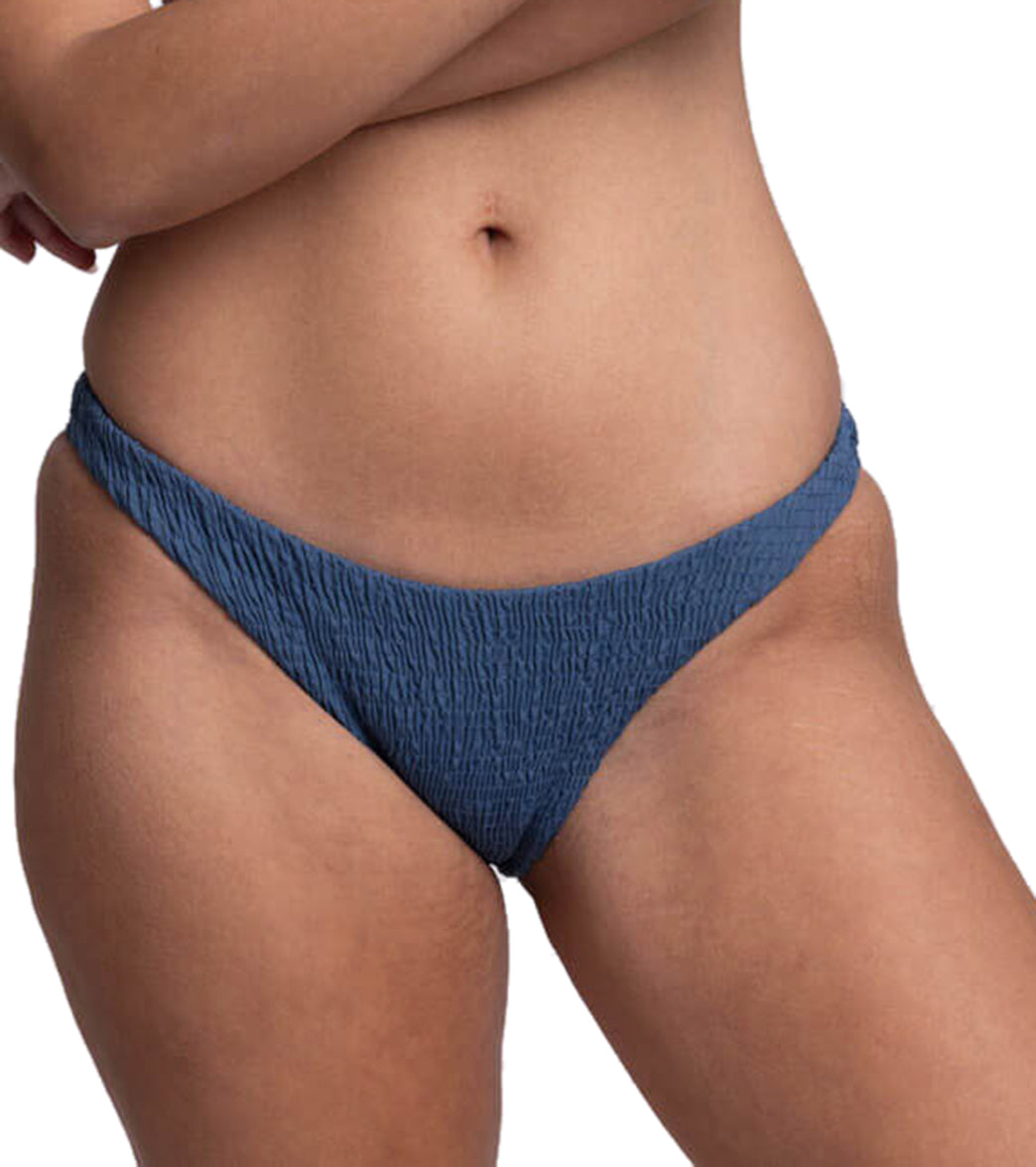 The JOLYN Women's Kelia Solid Smocked Bikini Bottom is a testament to timeless style and tactile detail. with a French cut that flatters and functions.