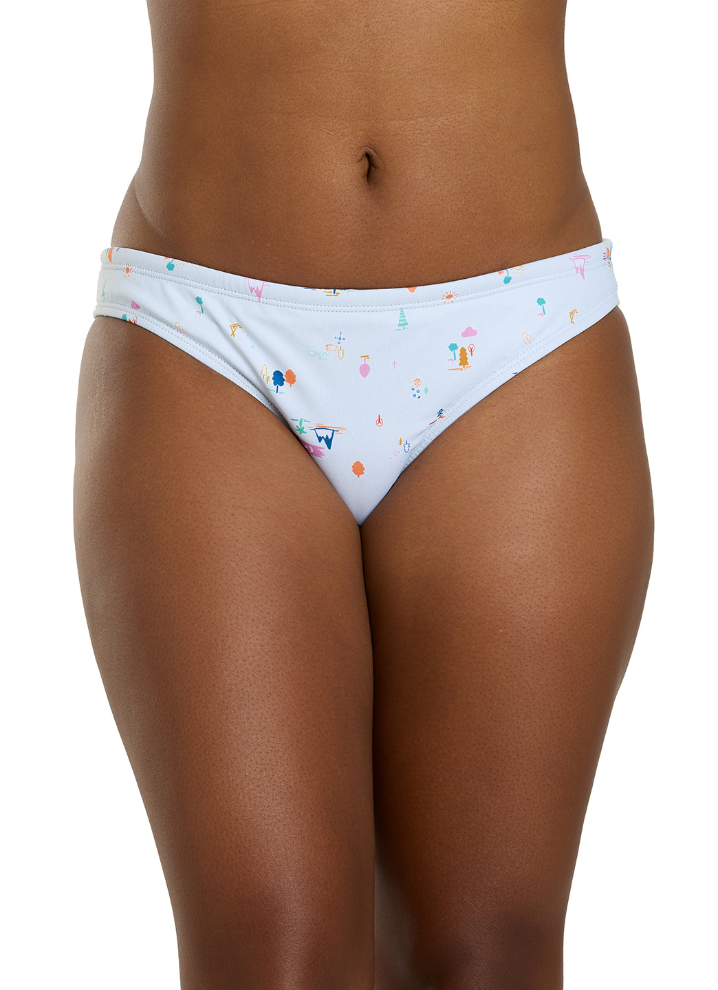 The Andy is a medium to full coverage. mid-rise bikini bottom that has a drawstring around the waist for superior hold. The Andy is perfect for lifeguards or anyone looking for a more conservative swim bottom.
