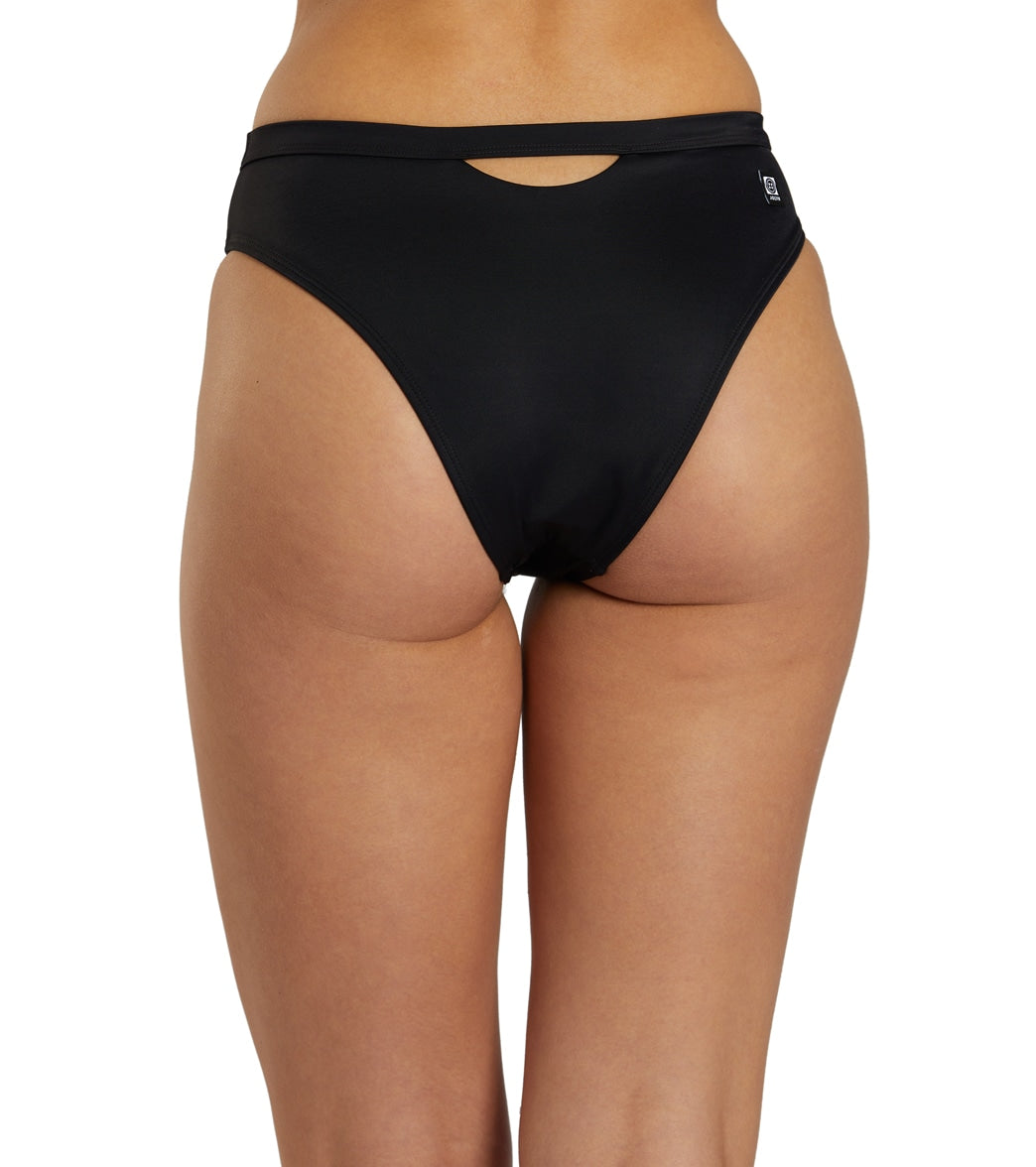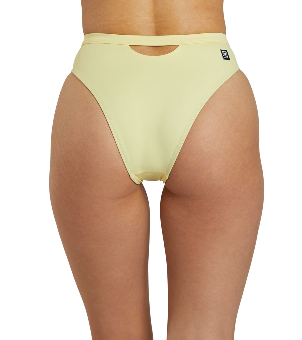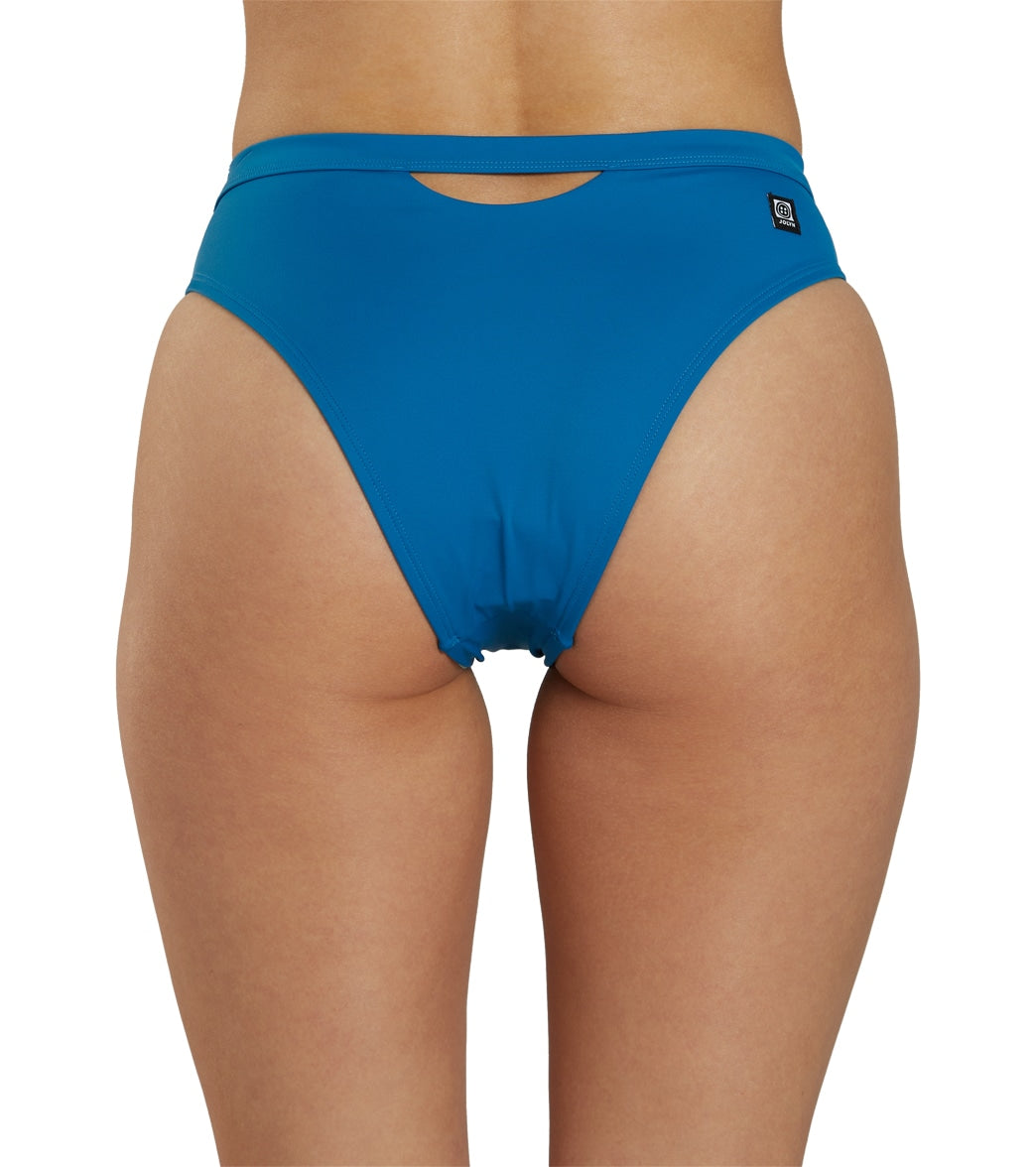 The JOLYN Women's Solid Nora Bikini Bottom offers a minimalist's dream with a sleek high waist and keyhole back. blending form with function.