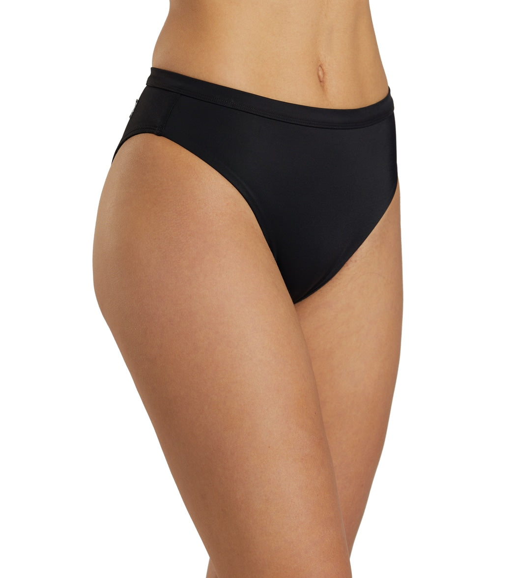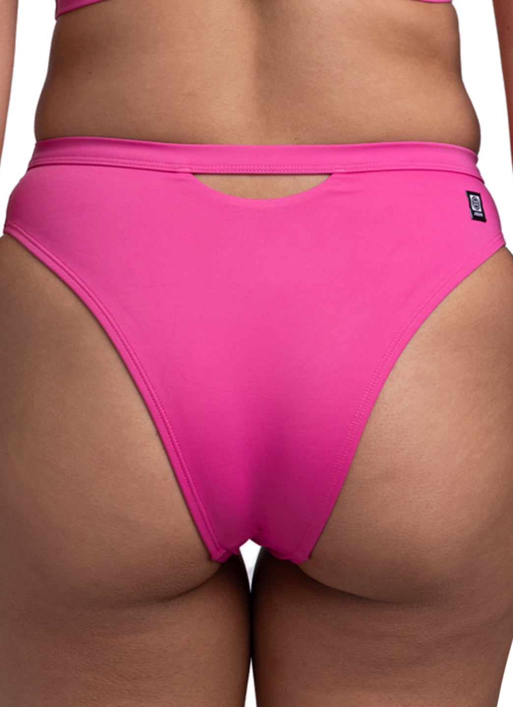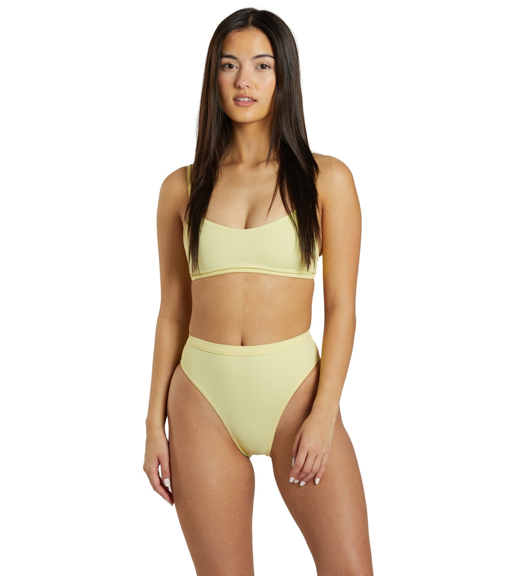 The JOLYN Women's Solid Nora Bikini Bottom offers a minimalist's dream with a sleek high waist and keyhole back. blending form with function.