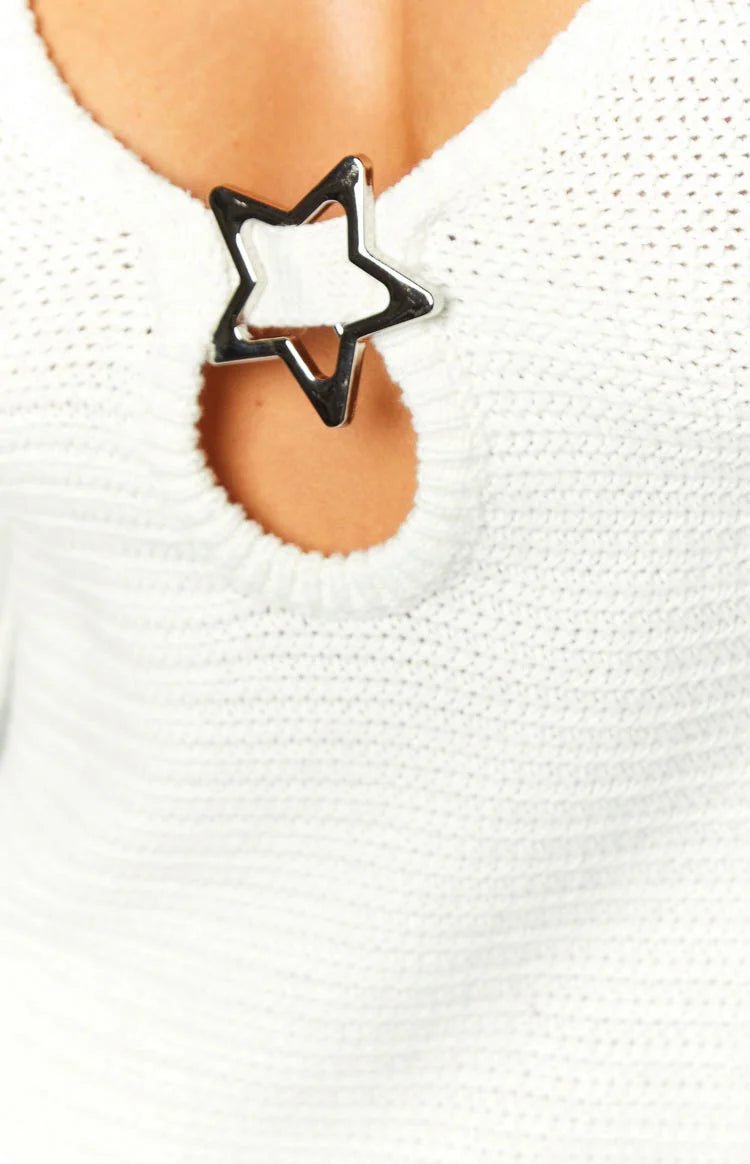 Elevate your style with this long sleeve crochet . It features long flared sleeves. a flattering scoop neckline. and a delicate crochet knit. perfect for any sophisticated occasion. The silver metal star detailing adds a touch of glamour while its stretch material and pull-on design ensure comfort all day long. Perfect for your next special event.