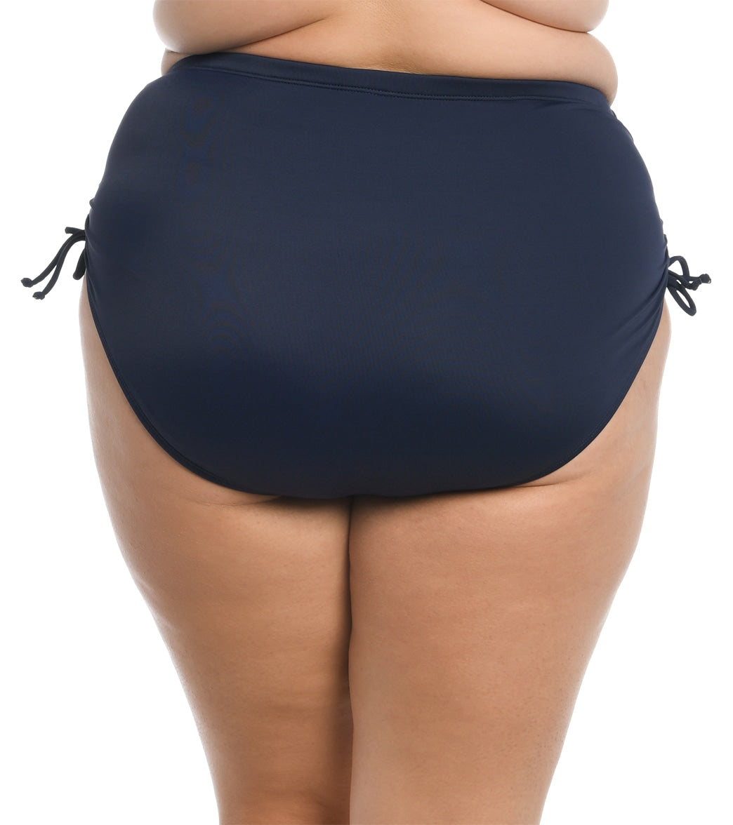 Maxine Women's Plus Size Solid Adjustable Ties Full Bikini Bottom