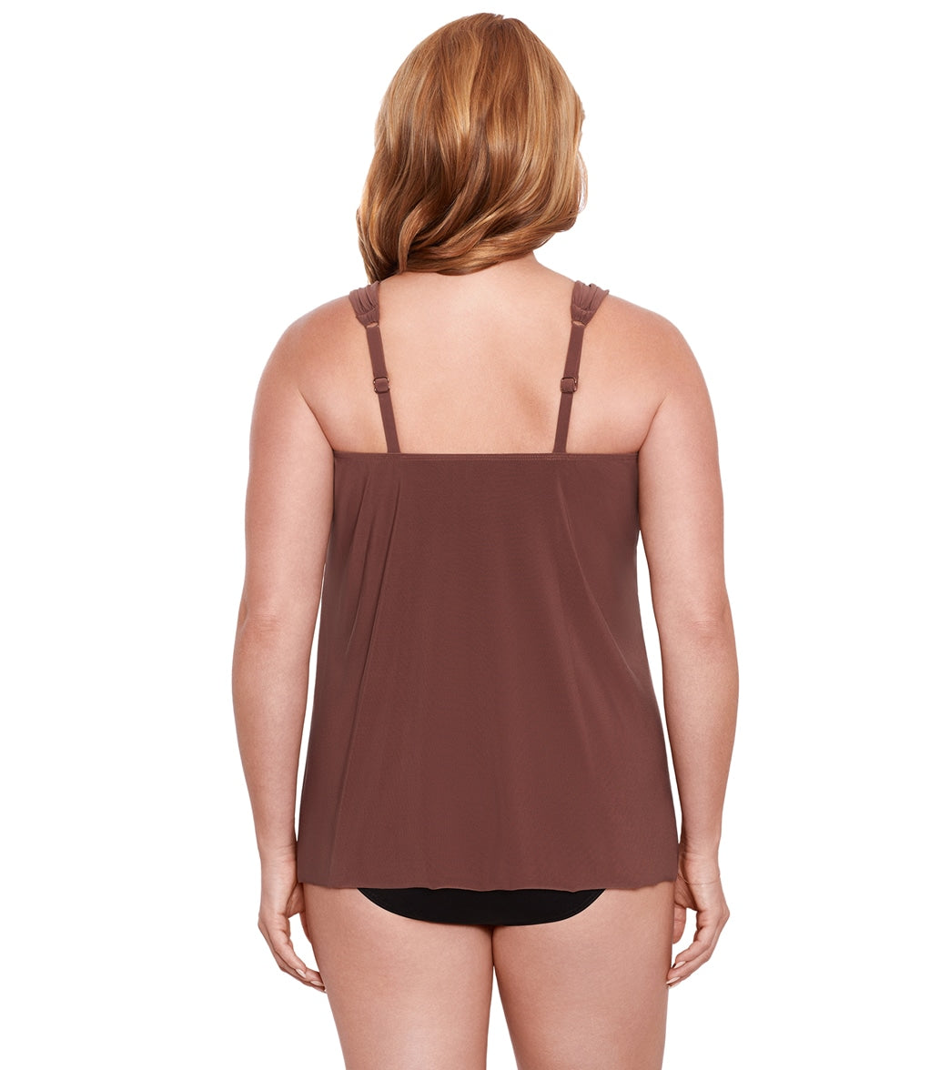 Add a little flair to your swimsuit top collection with the Miraclesuit Plus Size Razzle Dazzle Tankini Top. The drape of the fabric is made to camouflage your tummy and make you look longer and leaner all over.
