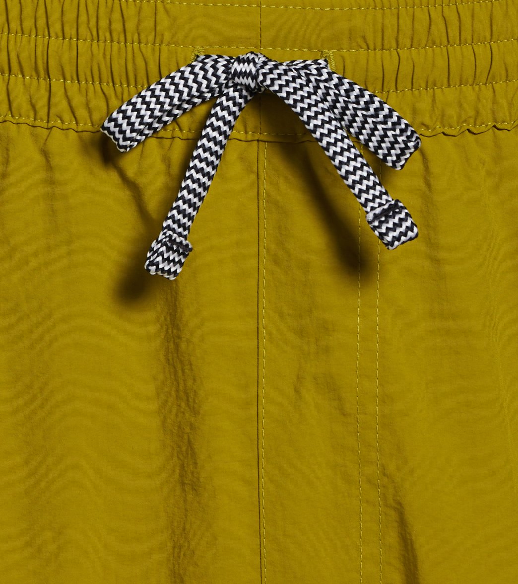 - Stretch waistband with exterior drawcord for a comfortable fit