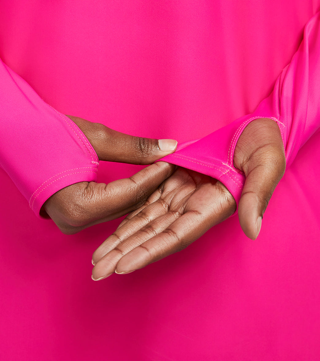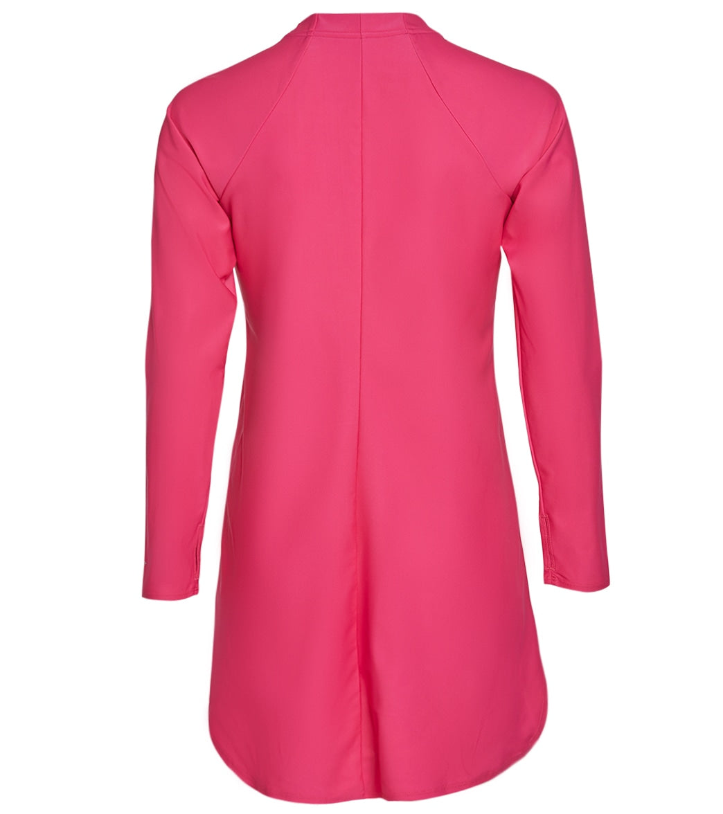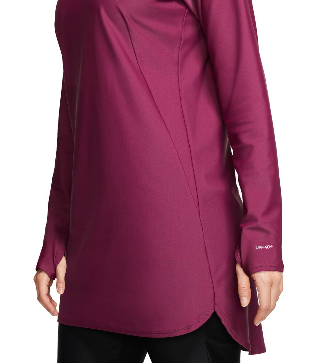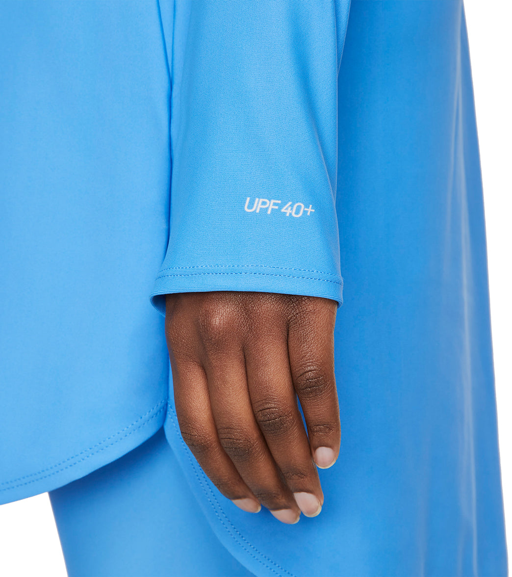 Cover up and swim with ease in the Nike Women's Modest Essential Long Sleeve Chlorine Resistant Swim Tunic. The featured side vents allow water to pass through quickly. resulting in a lighter feel. It's water-repellent material helps you dry quickly when you get out of the water.