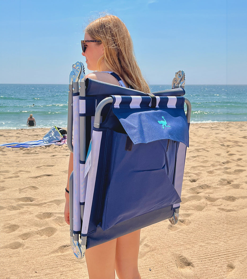 The Ostrich Backpack Chaise Lounge provides the ultimate in comfort and versatility. Patented open/close face cavity with arm holes allows you to lie on your back or stomach. Four positions let you recline or lay flat. Lightweight and portable. the Backpack Lounge includes backpack carry straps. a large storage compartment. and a convenient side storage bag.
