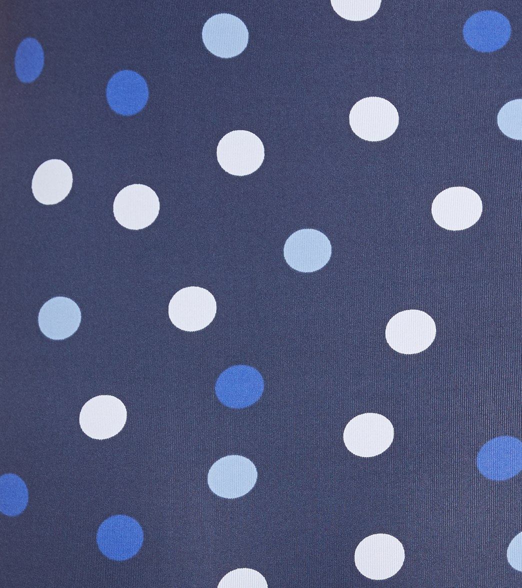 - Allover polka dot print.