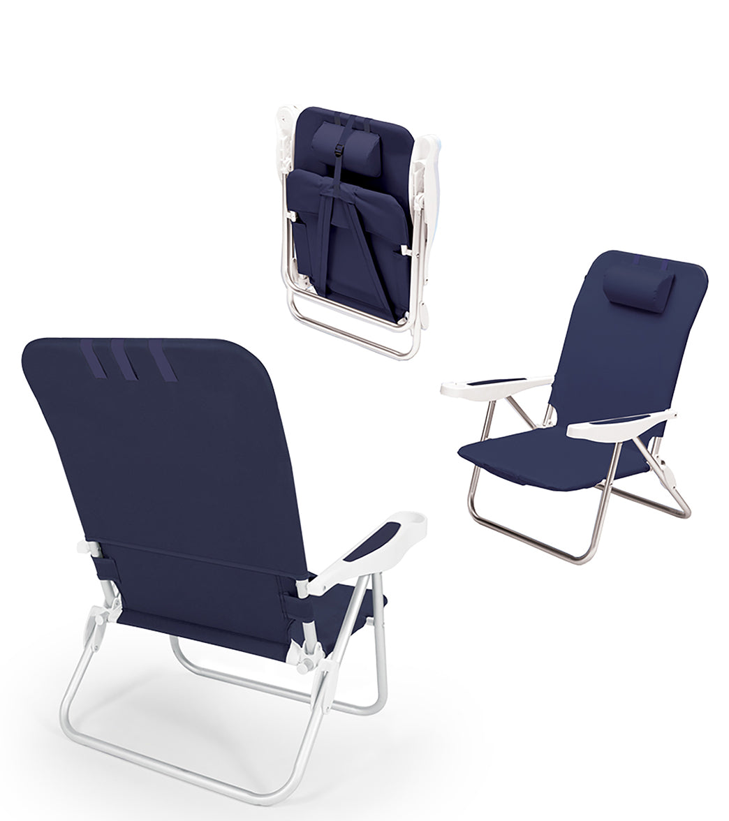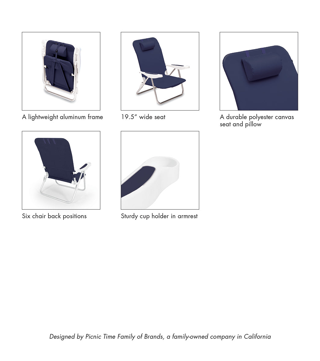 The lightweight. portable Picnic Time Monaco Beach Chair provides comfortable seating on the go. Sit back and relax. this beach chair features six chair back positions and an integrated cup holder in the armrest.
