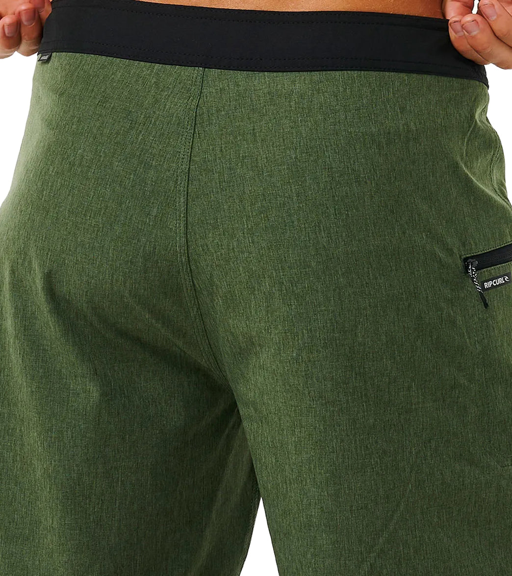 A Rip Curl staple. the Mirage Core 20 inch boardshort is offered in various fabrications with and without contrast waistbands. and a high hip zipper.