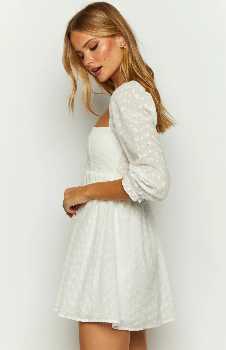 How cute is our broderie ? With a stunning long sleeves. intricate embroidery. and a fit to die for. this is the dress of your dreams. We love this piece paired with platform and gold for the perfect picnic outfit!