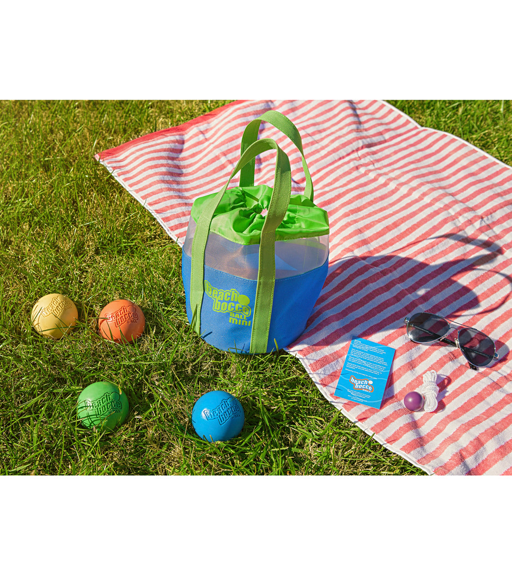 When four players gets too be too many. you can still enjoy this mini version of the classic Beach Bocce game. It's half the players. half the weight. but the same high-quality Beach Bocce balls. Plus. it comes in an easy-to-carry bag! These brightly-colored balls are still made of the long-lasting synthetic polymers. so they're ready for a lifetime of fun-in-the-sun.