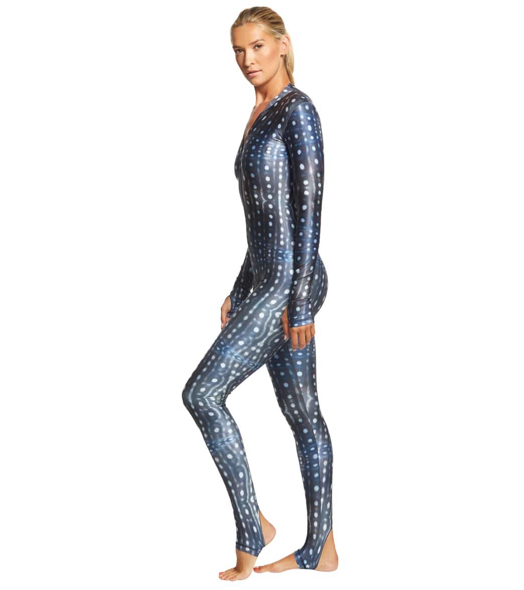 Show off your adventurous spirit and revel in distinctive style! The SlipIns Whale Shark Zippered Unitard exudes confidence and strength using the extraordinary pattern of the earth's largest fish (up to 46 feet and 12 tons!). This tight-fitting. full-body lycra dive suit offers 4-way stretch for maximum comfort. You'll own the ocean in this stretchy. breathable. fast-drying fabric with full body sun protection. Easily slip in (and out) of your wetsuit. wet or dry. Or wear it on its own!