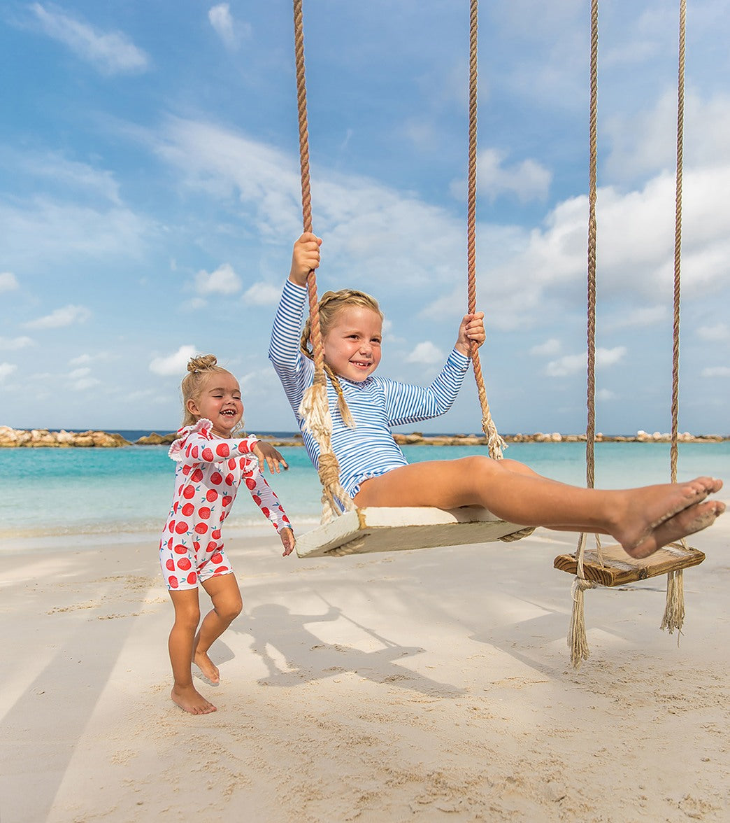 Let your little one enjoy the sunny days and make castles wearing the Snapper Rock Girls' Juicy Fruit Long Sleeve One Piece Swimsuit (Baby).