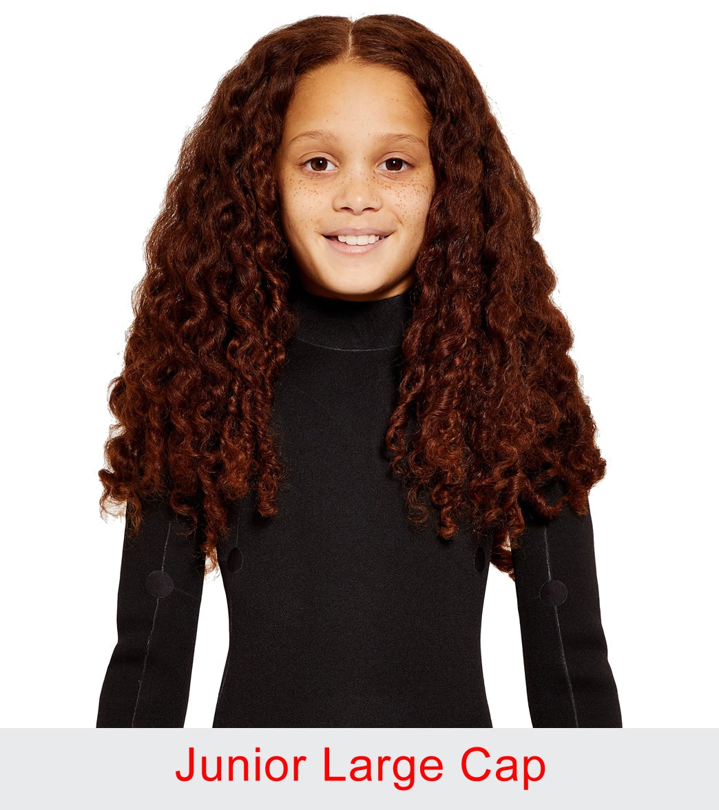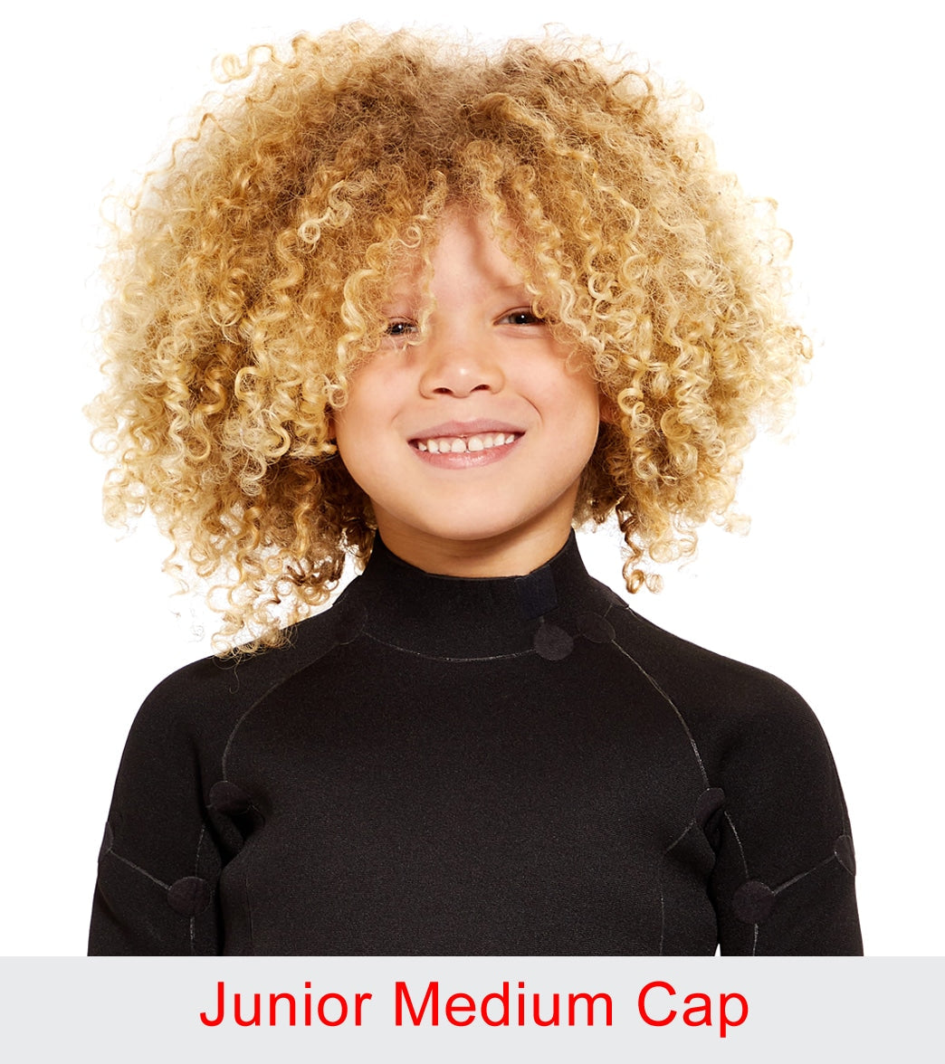 - Designed for kids with voluminous hair: the junior swim cap has extra space for every hair type. with a snug fit and a tight seal for younger swimmers with volume-blessed hair. It's a one-size-fits-all cap with a unisex design �so it's the perfect swimming cap for girls and for boys.