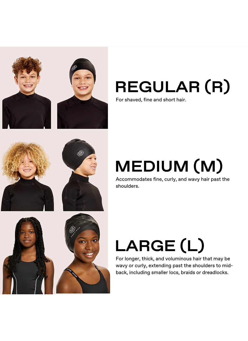 - Built for big hair (and bigger personalities). the skin-friendly kids' swim cap gives you the same full protection as our larger adult range �but in a smaller size for the same watertight seal.
