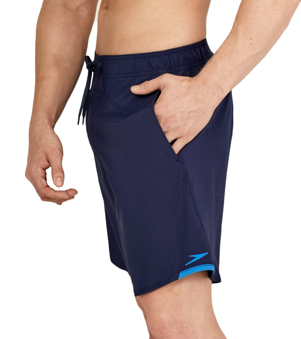 Mix it up in the pool or on the beach with the Speedo Men's 18" Speedo Explorer Board Shorts. It's constructed from durable water repellent Speedo Eco 4-way stretch fabric for ultimate comfort. while a Block the Burn finish provides UPF 50+ sun protection.