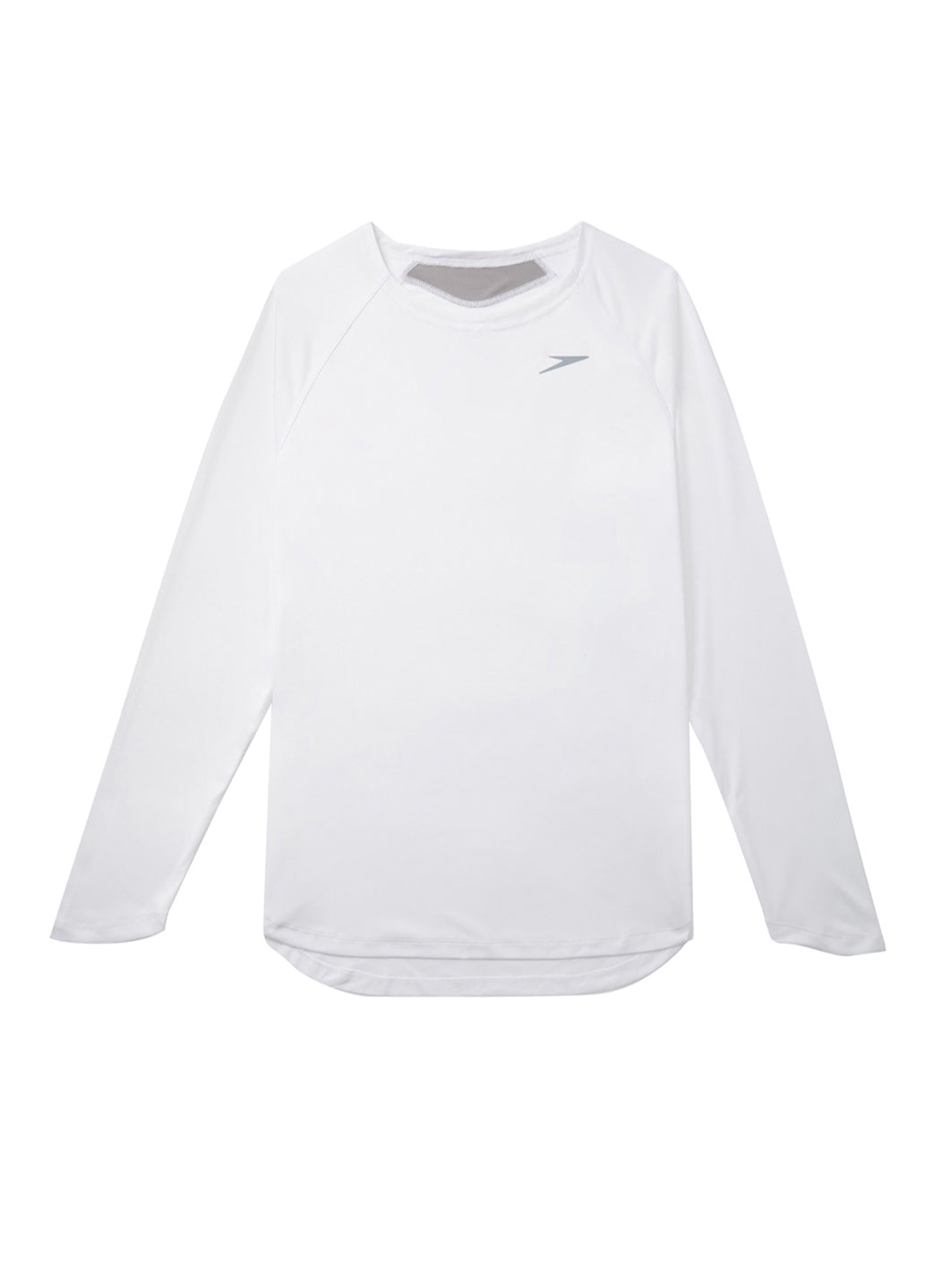 Cover up in the pool wearing the Speedo Men's Long Sleeve Training Shirt. Tis crewneck style is made from quick-drying Speedo Eco fabric enhanced with Block the Burn UPF 50+ for built-in sun protection.