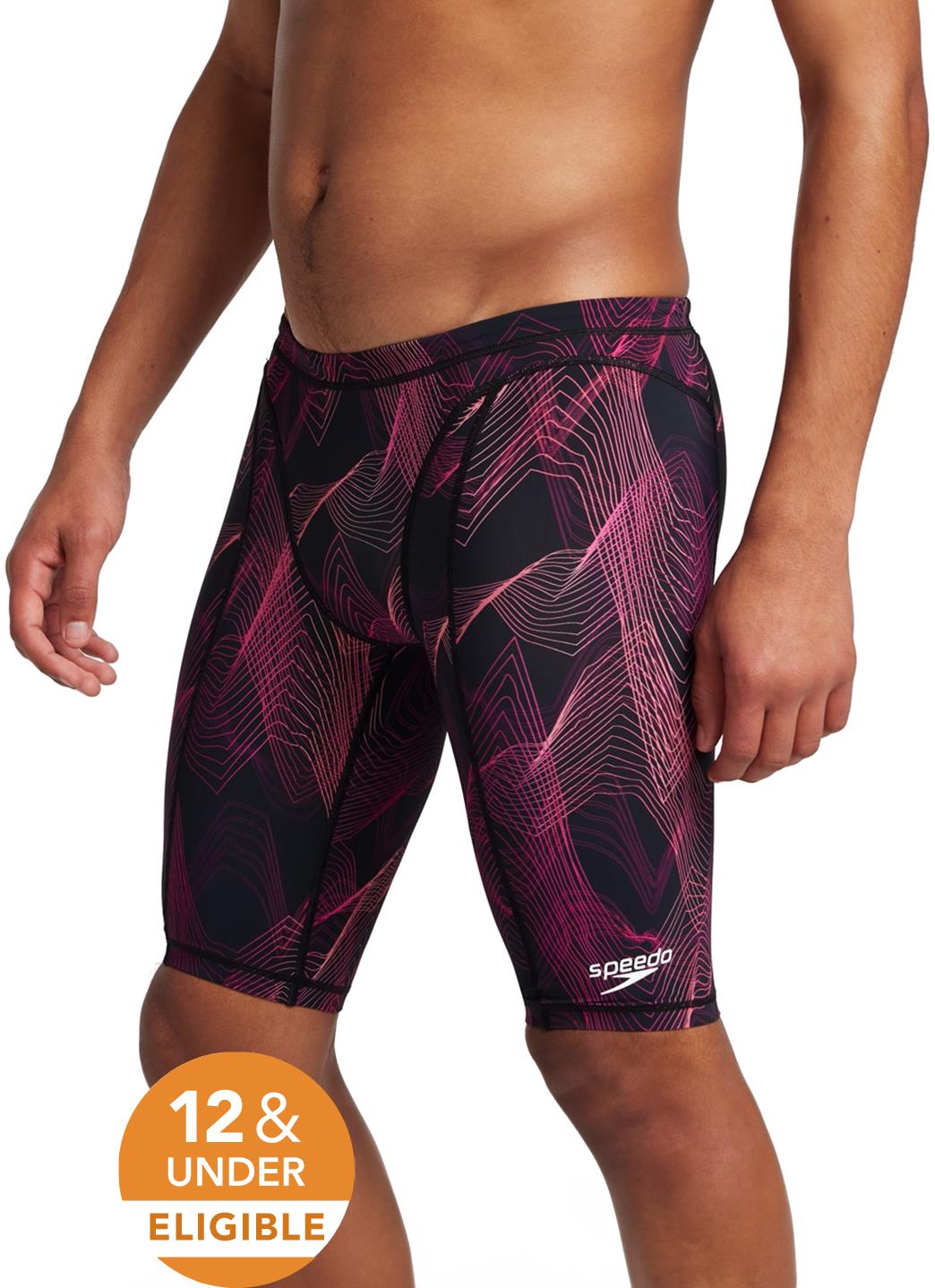 Electrify your performance on race day in the Speedo Men's Speedo Print Vanquisher Jammer Tech Suit Swimsuit.