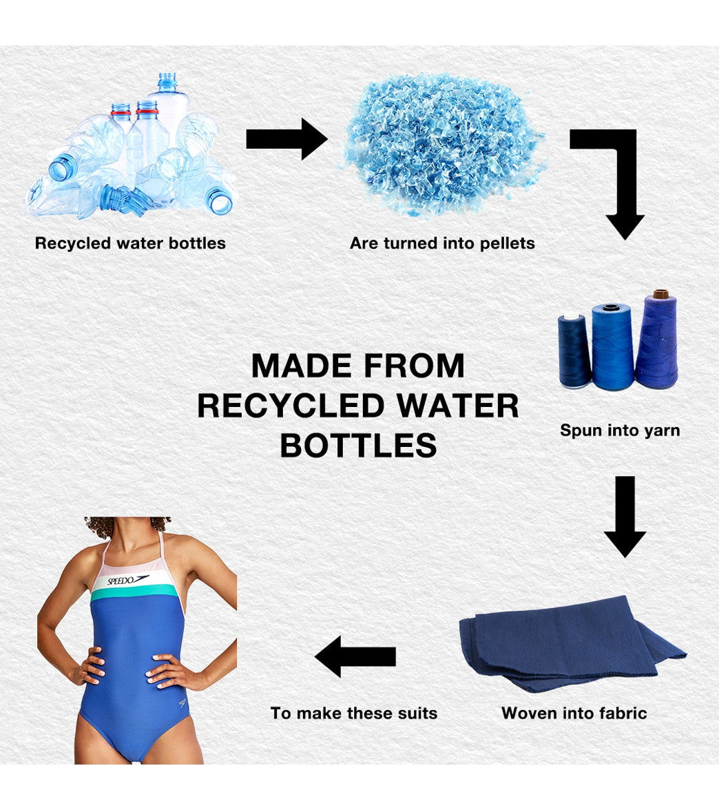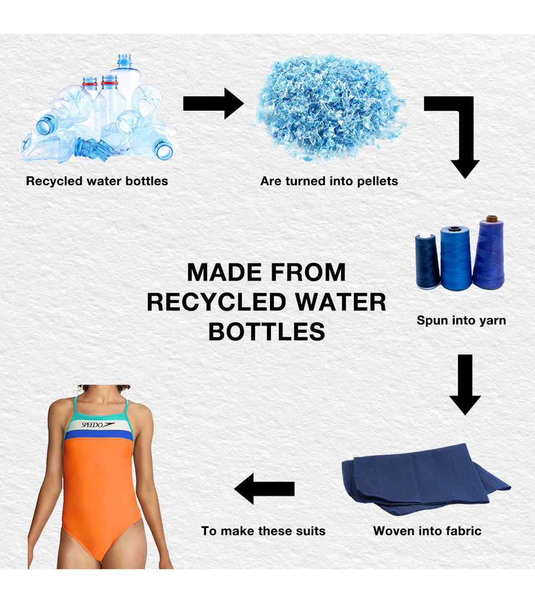 - Speedo Eco Endurance: Durable. chlorine-resistant fabric made with 52% Repreve recycled polyester