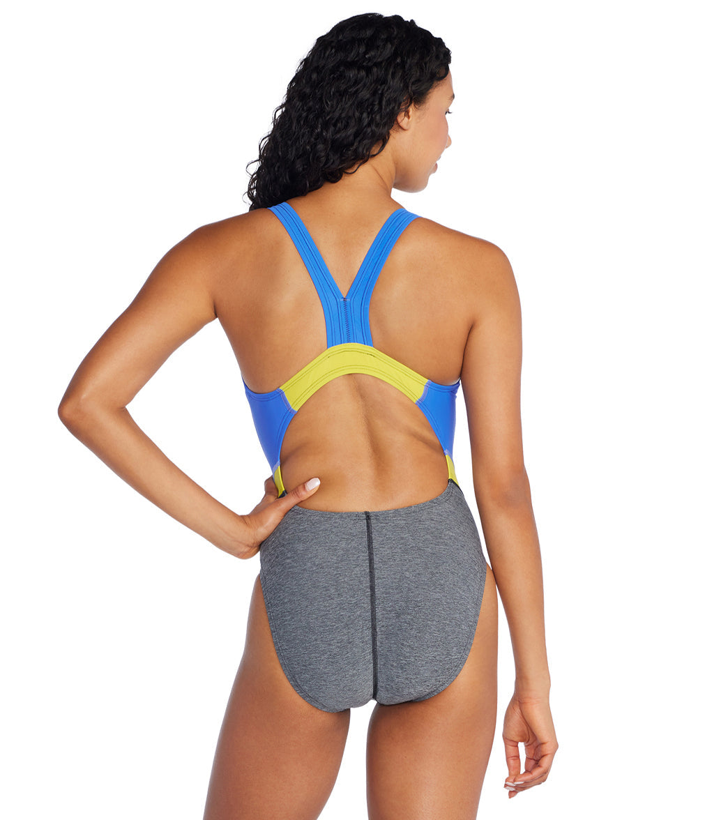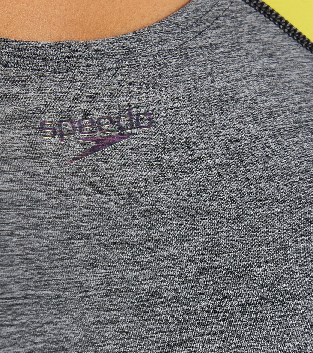 The Speedo Women's Heather Quantum Fusion Splice One Piece Swimsuit is durable and stylish for any occasion!