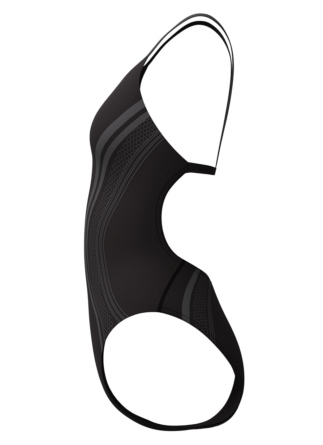 Speedo racing tech �translated for training. Train your way to the podium in our new Active Back swimsuit. now available with a sleek contour print. Low-profile bonded V-class straps. inspired by elite racing suits. deliver our most comfortable training strap yet. Clean-finish neck and arm openings nail your comfort. and thin straps maximize your movement.