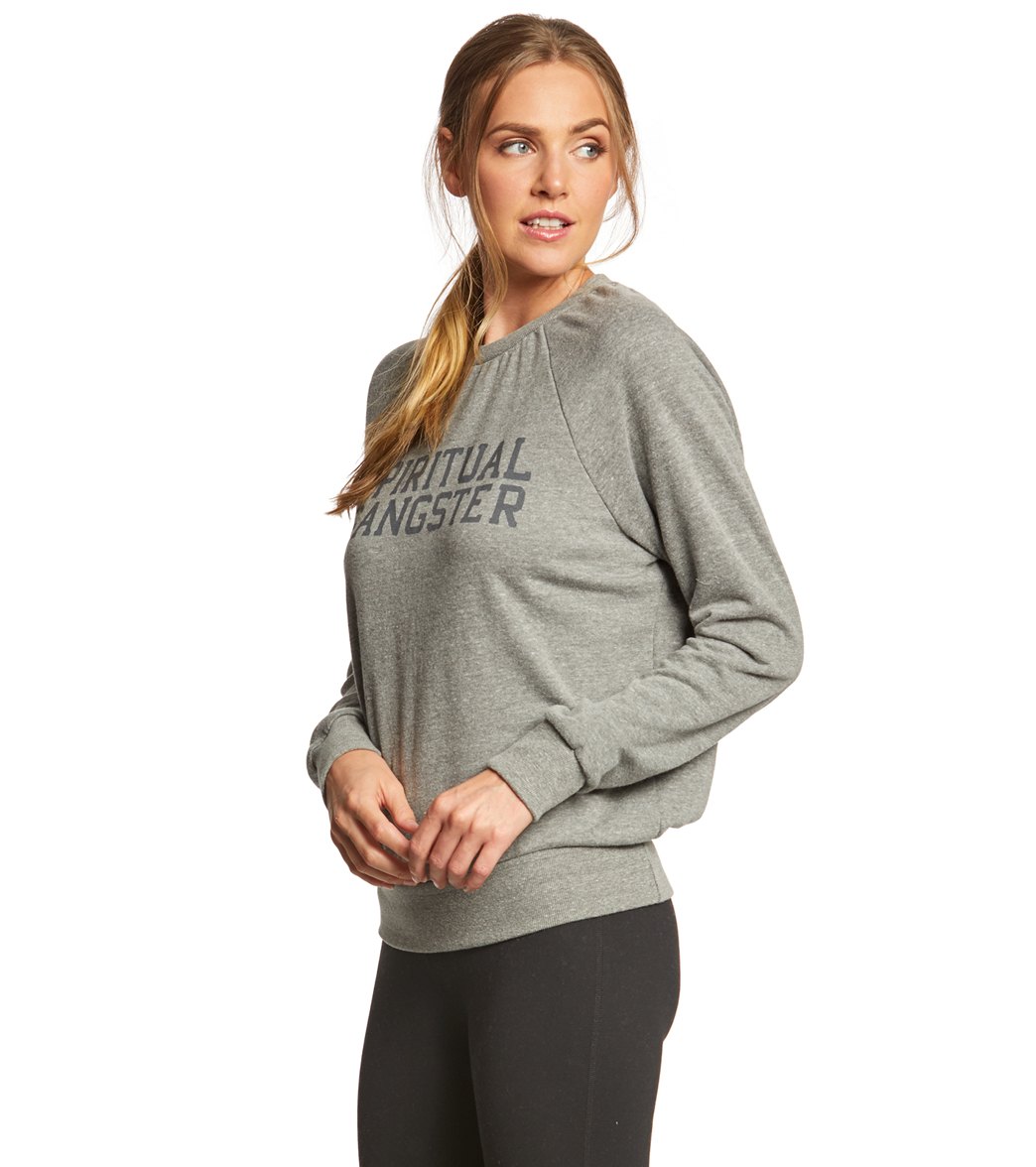 Lay back and relax in this Spiritual Gangster SG Varsity Old School Pullover. Made with soft tri-blend jersey. this crewneck sweater features raglan sleeves and a Spiritual Gangster logo graphic on the front for a classic look.