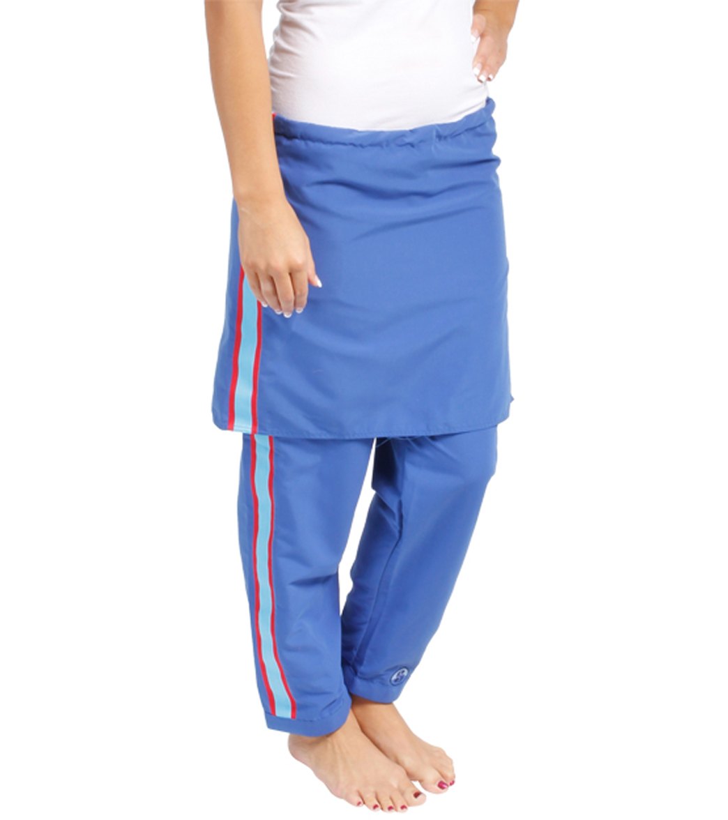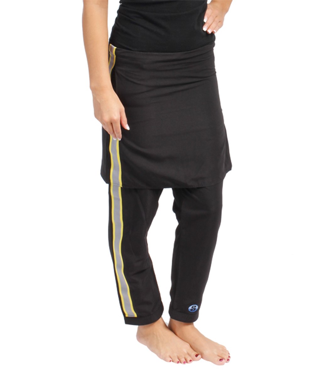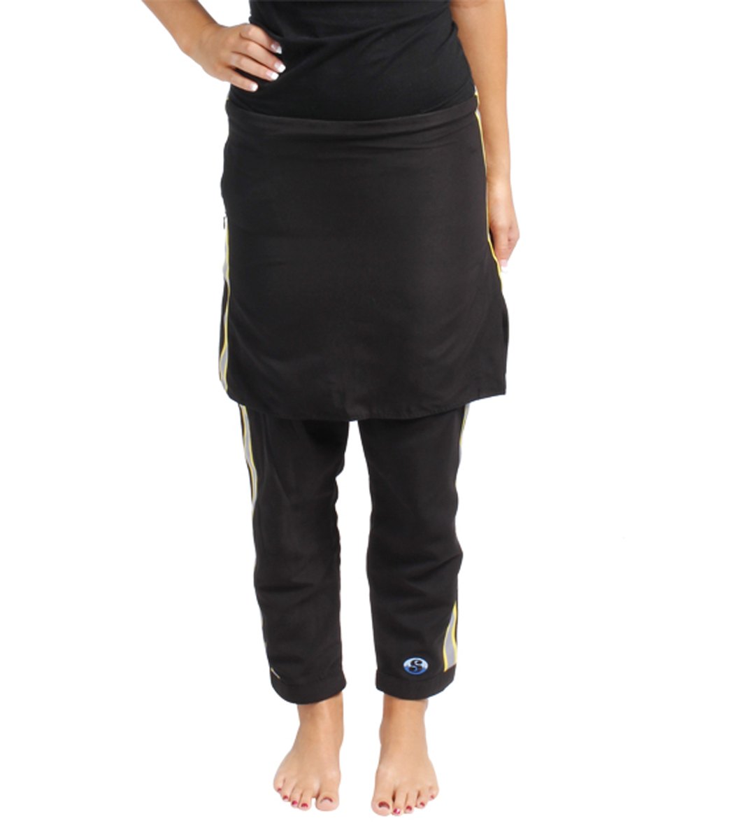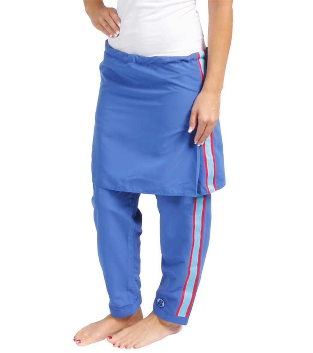 The La Femme one-piece bottom reflects the feminine side by combining an A-line skirt attached to the sport pants. These bottoms provide full coverage. excellent modesty. and sit comfortably at the waist to provide freedom of foot motion during swimming.